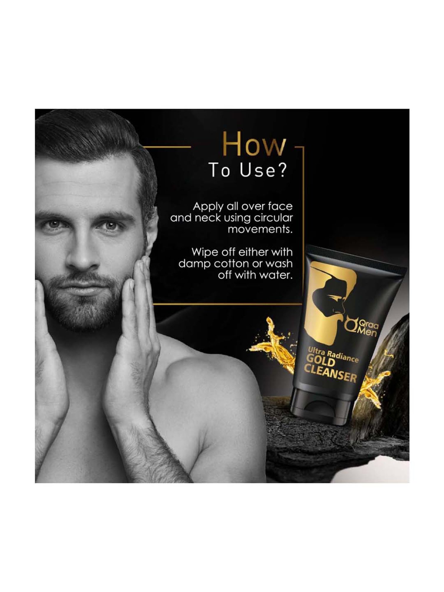 | Usage Instructions | Qraa Men Ultra Radiance Gold Cleanser makes for this best available cleanser with super easy usage and comes with a gentle formulation with luxurious gold colloidal that renders it as an exceptional product that can be used on a daily basis. Heres how to use this ultra radiance gold cleanser for maximum benefits-Gently squeeze a small quantity of the Qraa Men Ultra Radiance Gold Cleanser on your hands and rub it between the palms. Apply this brilliant gold cleanser all over the face and neck area with the help of your hands. |