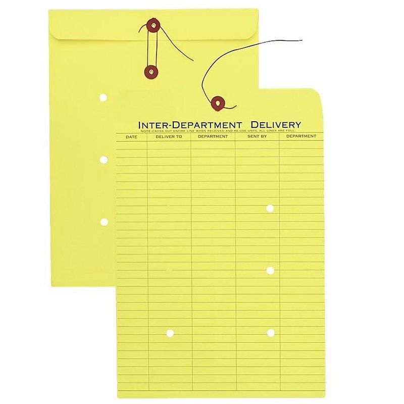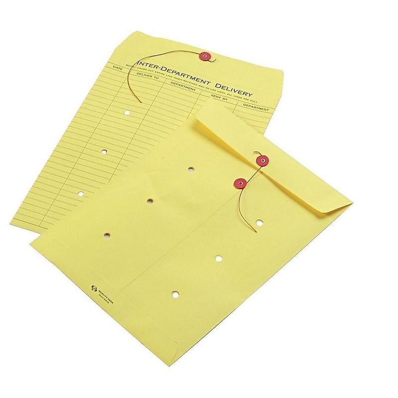 Colored, 28-lb. paper stock delivers coding flexibility and rip-resistant durability. Convenient string and tie closure withstands heavy use. Pre-printed routing table provides space for 31 entries. String and button closure. Pre-printed routing table for 31 entries Sold as 100/Box.