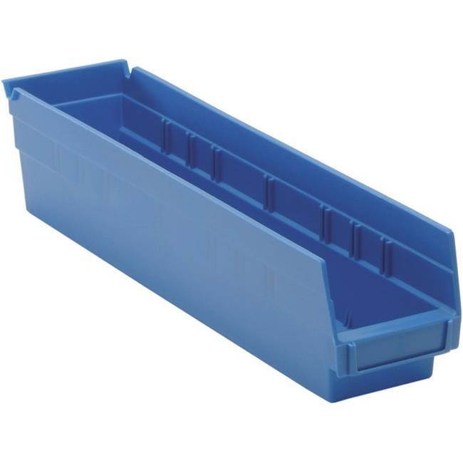 Plastic Shelf Bins and Shelving Units • Additional Plastic Shelf Bins, Cups, and Shelving Units are available, see Grainger. comHigh-density shelf bins feature a molded-in label holder, and a wide hopper front and built-in hanglock for easy access to contents. Optional dividers fit horizontally across bin and allow easy part labeling with individual label slots. 4" and 8" bins can accomodate up to 7 dividers and 6" bins can accomodate up to 8 dividers. Shlf Bin, 17-1/8 In. L, 4-1/8 In. W, 4 In H