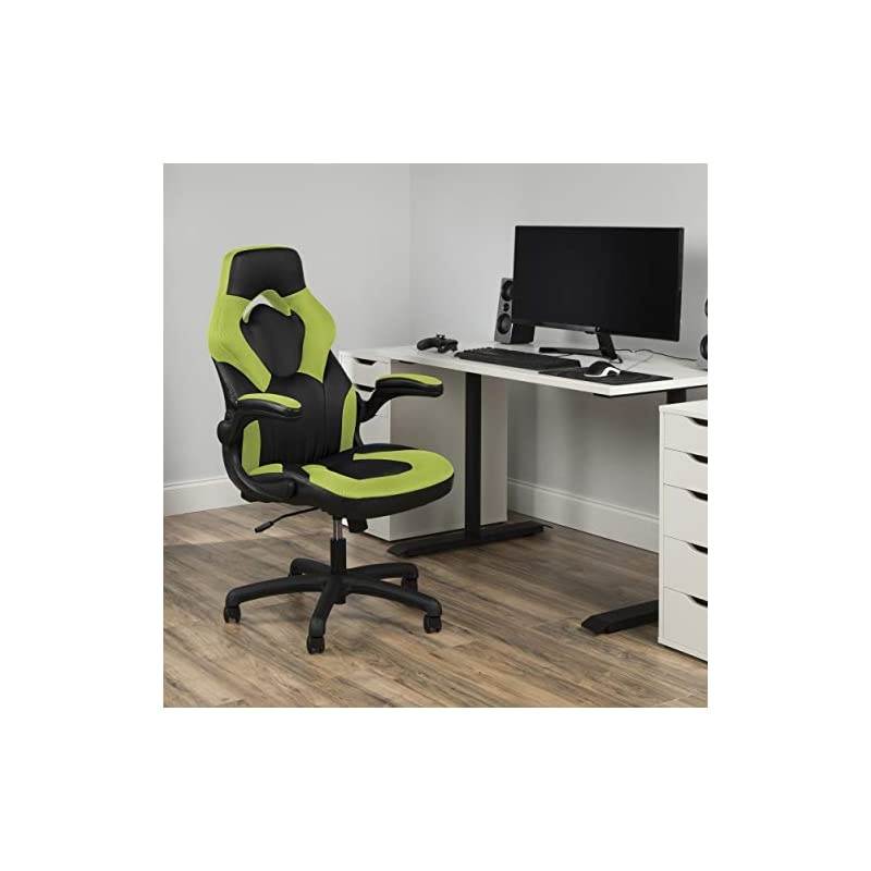 Color: Green The Essentials by seating collection is where quality meets value - and now it's taking the desk chair to a whole new level with the ESS-3085 series. Designed in an ergonomic race car style with contoured segmented padding, a high back, and integrated headrest and lumbar support, this chair provides high-performance comfort whether used during intense gaming sessions or long work days. The thickly padded armrests can be left down for upper body support or flipped up to allow for uninhibited movement whenever you need it. Additional features include seat height adjustment, tilt-lock/tilt-tension control and 360-degree swivel. SofThread Leather and contrasting color mesh upholstery complete the modern, high-quality look and feel of the ESS-3085. The comfort, style, and competitive price of this chair make it a perfect addition to your home or office. This chair meets or exceeds industry standards for safety and durability, and is backed by our Essentials by Limited Lifetime warranty. The ESS-3085 has a 250 pound weight capacity.