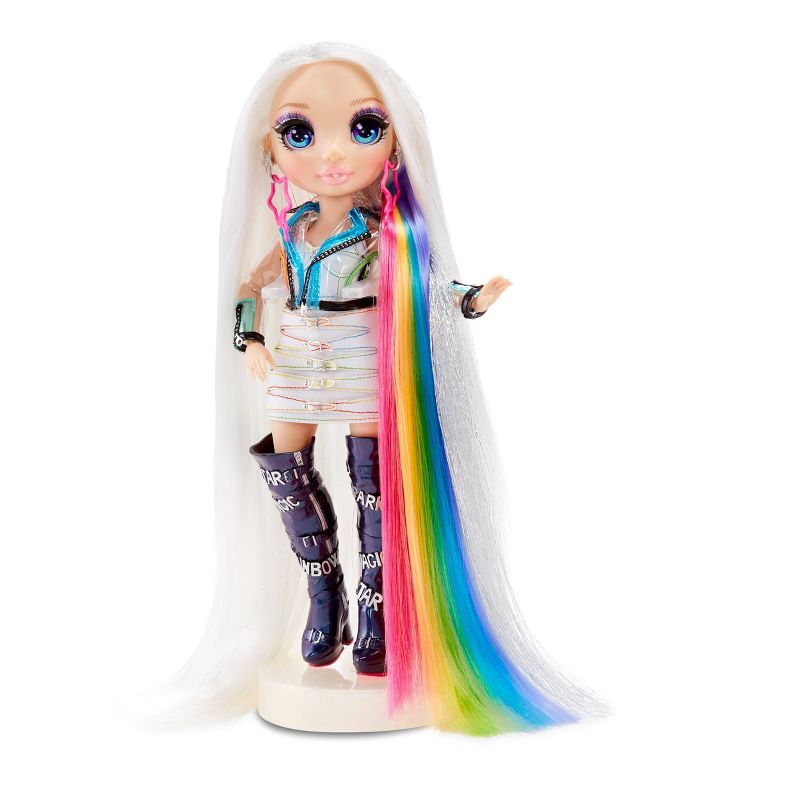 •MEET AMAYA RAINE: has extra-long premium platinum hair. She has a beautiful rainbow outfit with a cute top and skirt, translucent jacket, star earrings, and show-stopping boots.