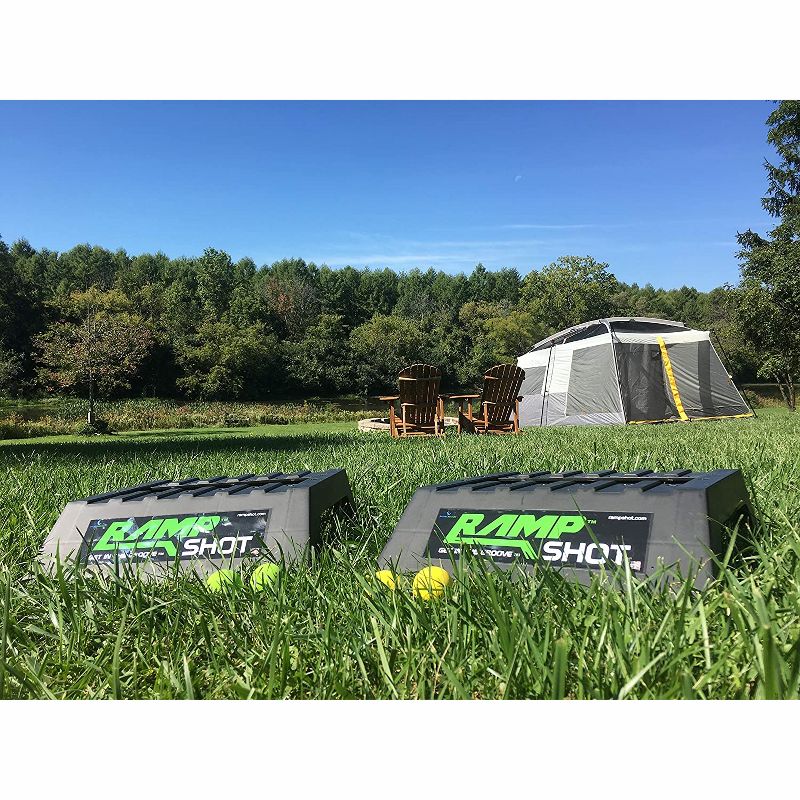 Bring fun and excitement to your next cookout or tailgate party with the RampShot Plus Outdoor Backyard Game Set. This 4-player game features 2 plastic ramps with nets and 4 racquetballs.