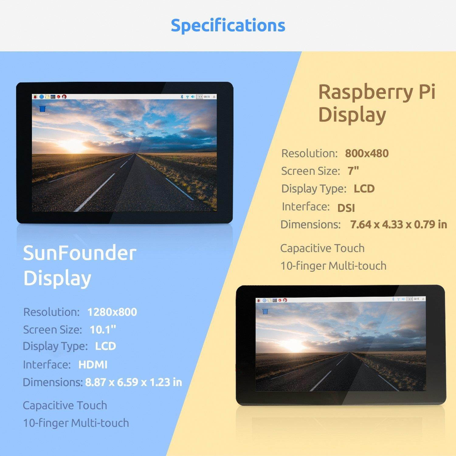 Introduction This SunFounder Touch Screen is a 10-point IPS touch screen in a 10.1 '' big size and with a high resolution of 1280x800, bringing you perfect visual experience. It works with various operating systems including Raspbian, Ubuntu, Ubuntu Mate, Windows, Android, and Chrome OS. Package Included 1 x 10.1 '' IPS Touch Screen 7 x M 2.5 x 14.4 Copper Standoff 2 x M 2.5 x 22 Copper Standoff 1 x HDMI Cable 1 x Micro USB Cable 1 x USB Touch Screen Cable