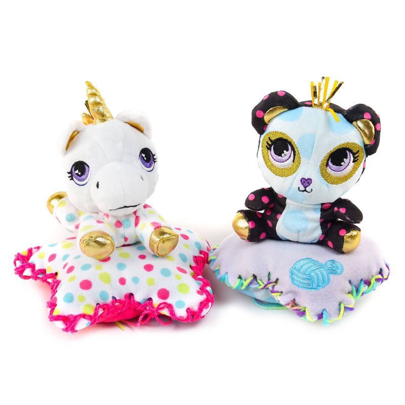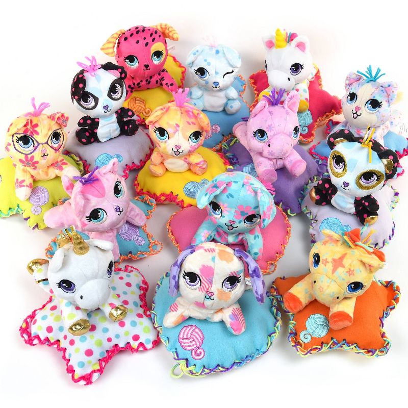 •Each playset contains 12 surprises including button charms, pet's name tag, stickers, sewing needle, collector card, pillow bed, yarn for pom poms and bracelet crafts and a collectible plush character.