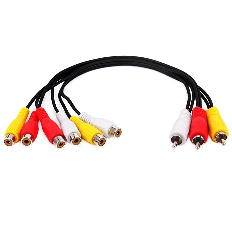 ExtensionProduct Features: 3 RCA male to 6 RCA female AV cable. Standard RCA "Video, R-Audio-L" (yellow-red-white) connectors. Used to connect RCA audio/video devices such as TV, DVD, etc.
