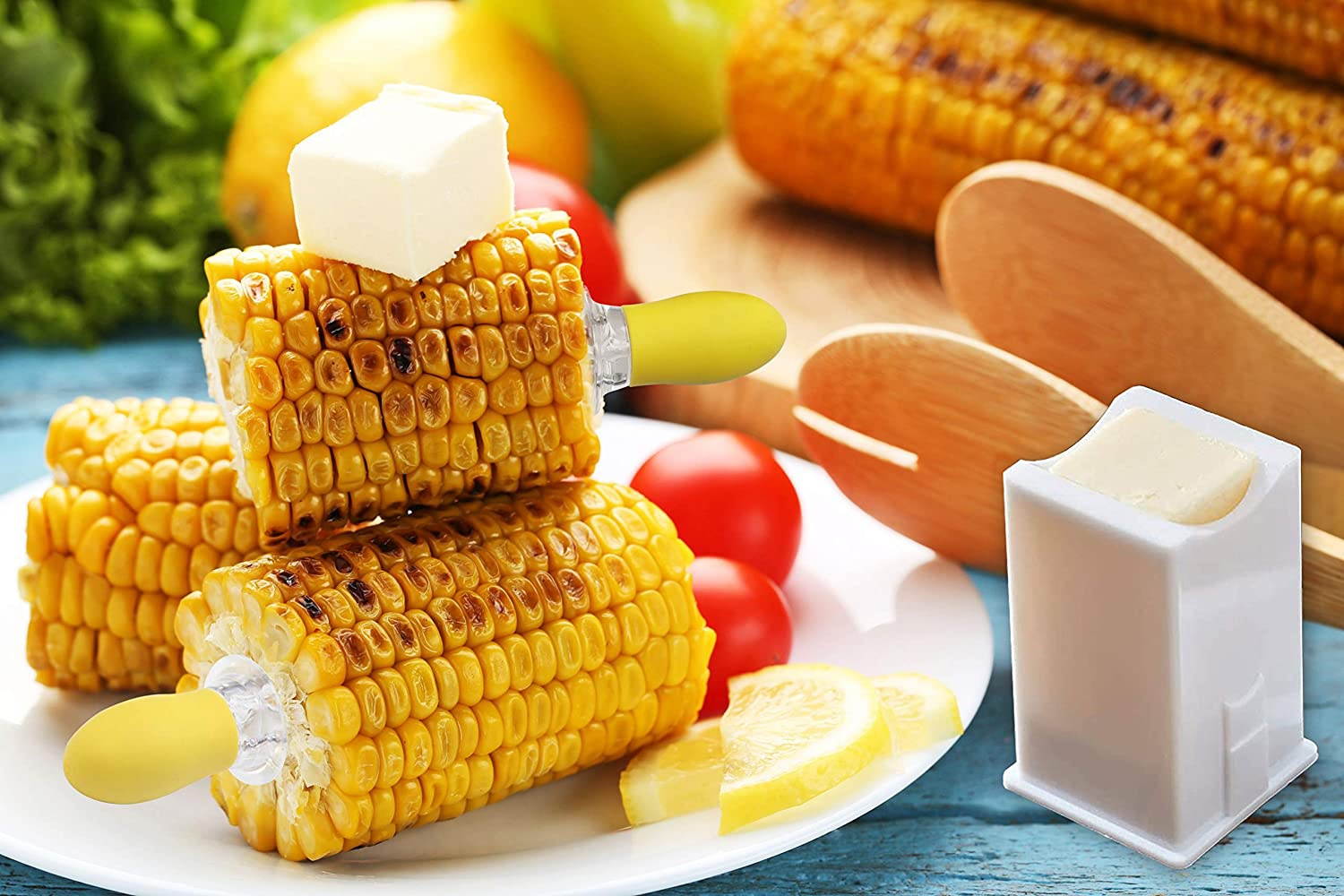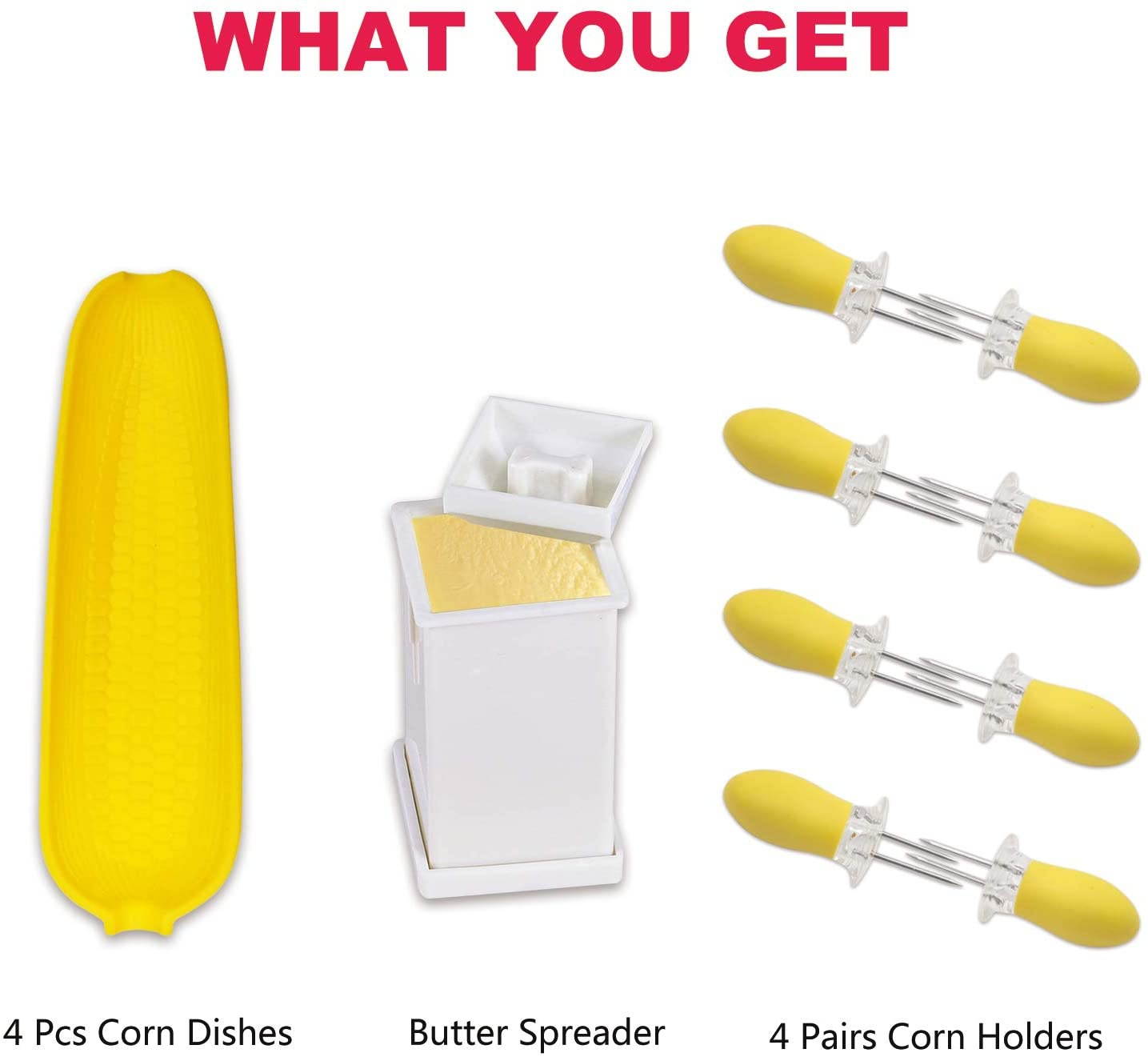 Buy Recoil Corn Cob Holders Skewers BBQ Twin Prong Holders, Corn Dishes and Butter Spreader Set Kits, Includes 8 Corn Cob Holders, 4 Corn Dishes and Butter Spreader in United States - Cartnear.com