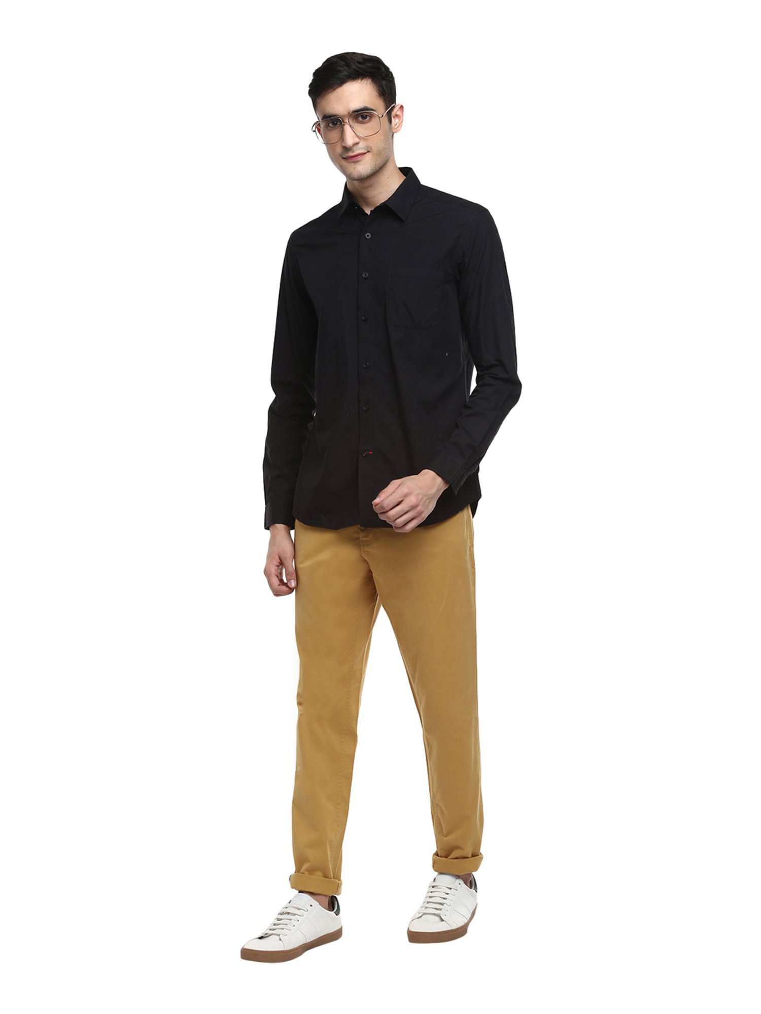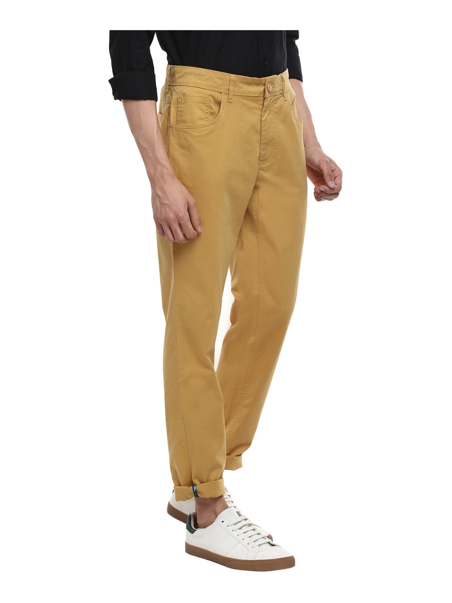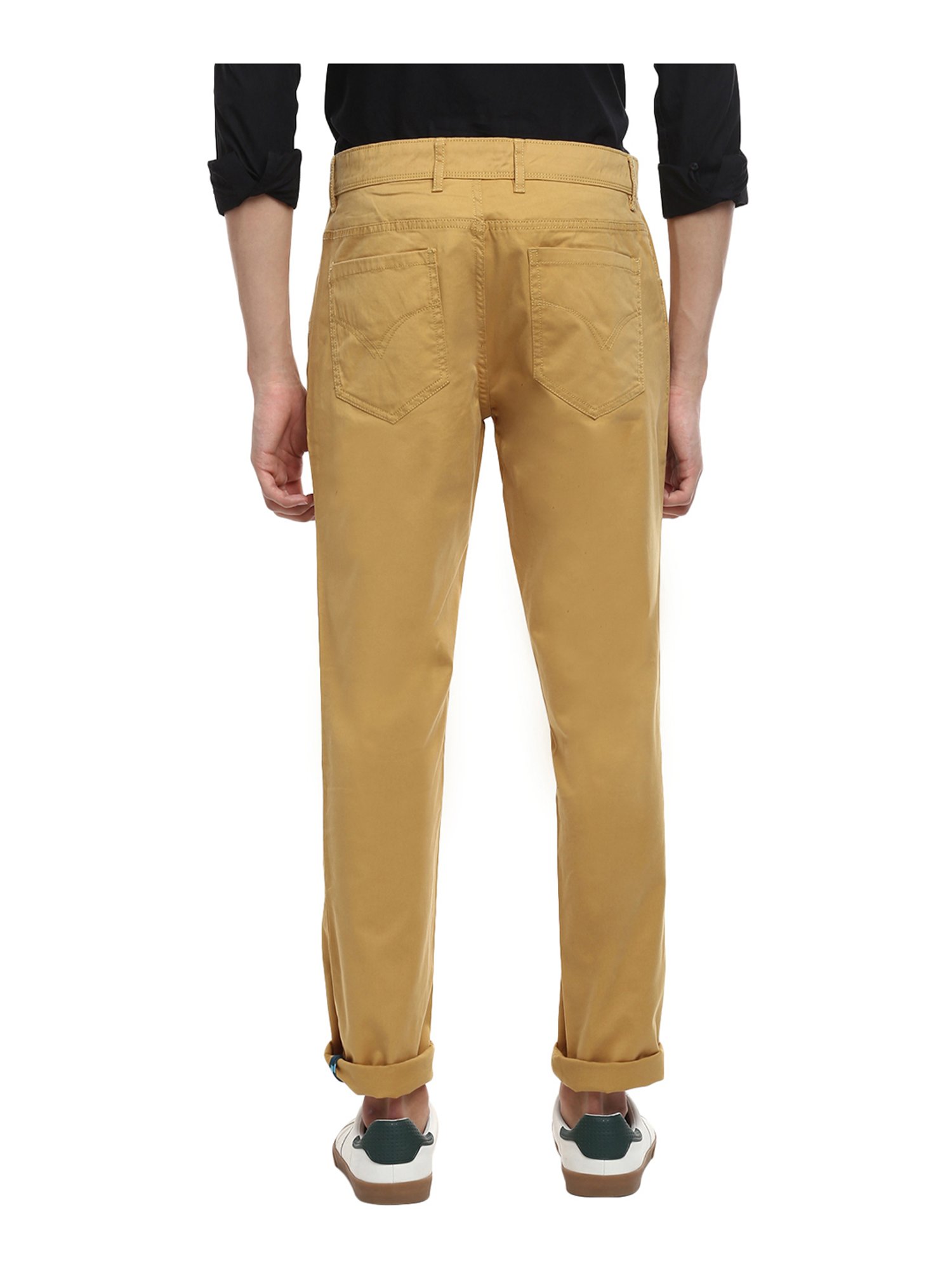 Add panache to your dressing ideas with this fashionable pair of mustard flat front trousers from the latest collection of Red Chief. Well cut and artfully crafted from premium stretch cotton for an unmatched feel and superb wear comfort, these are designed with a regular fit for a classic style. Pair them with a contrast shirt and leather shoes for a crisp look.