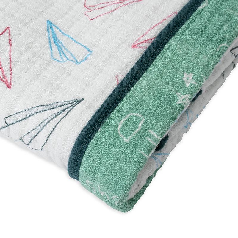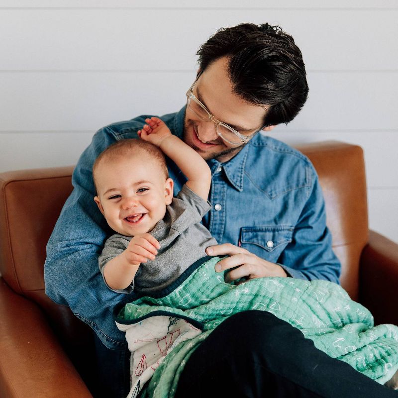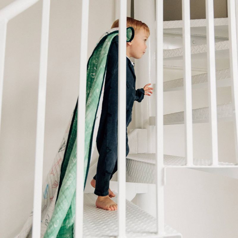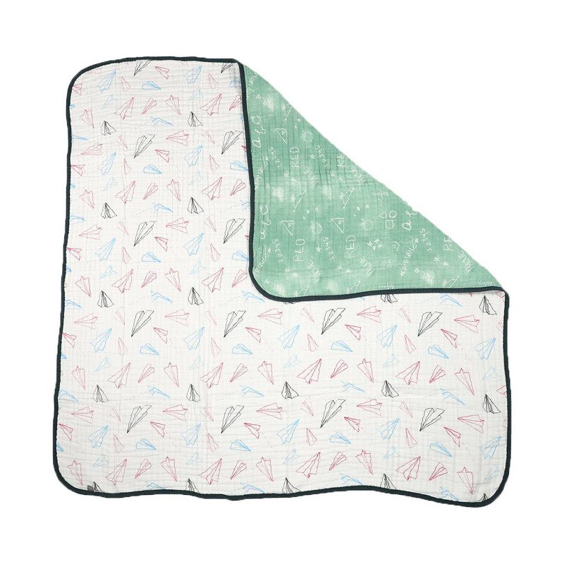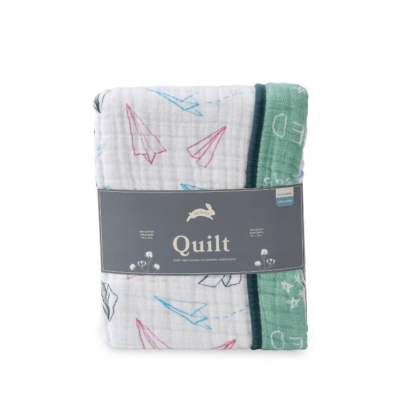 Snuggle your little one in our classic baby quilt. Featuring playful, original prints created by our in-house artists exclusively for Red Rover. Made with three layers of cotton muslin and finished with a durable cotton boarder. Warm yet breathable. Ideal for napping, fort-making, snuggle time and more! Softer with each consecutive wash.Â