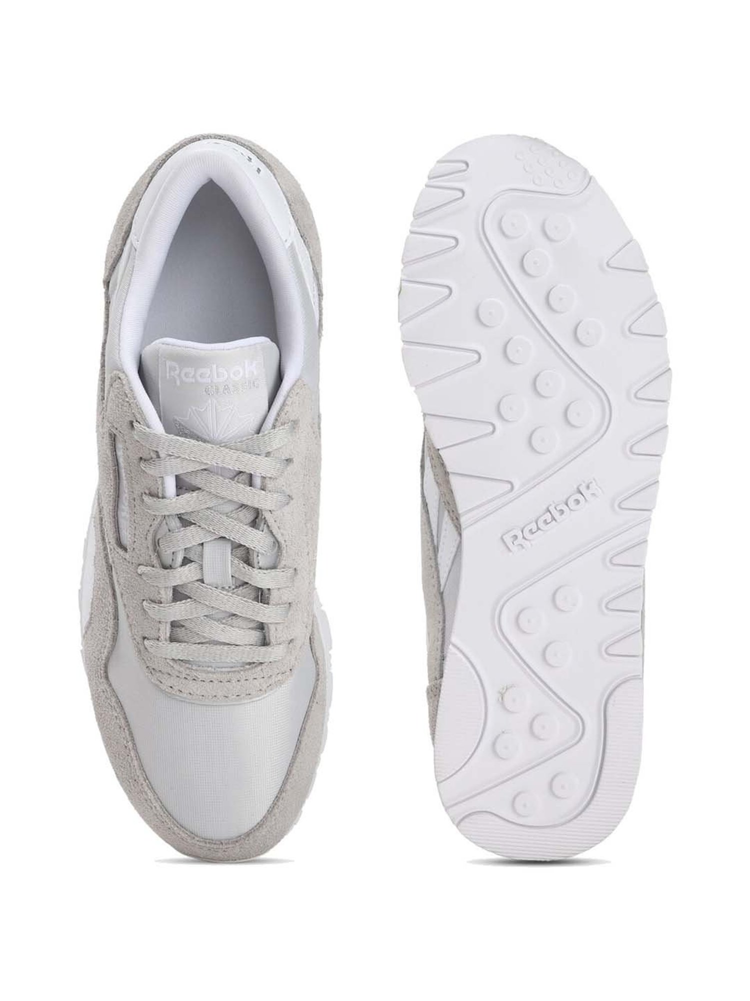 Create a bold fashion statement with this comfortable pair of running shoes from Reebok. This pair comes with a rubber upper and its sole is made of premium quality rubber to ensure longevity. It features the iconic polybag nylon underlays with a mix of leather suede overlays and synthetic leather accents for color depth.