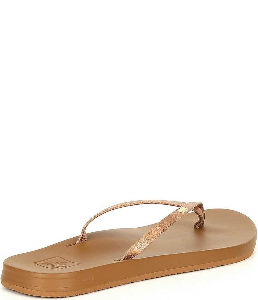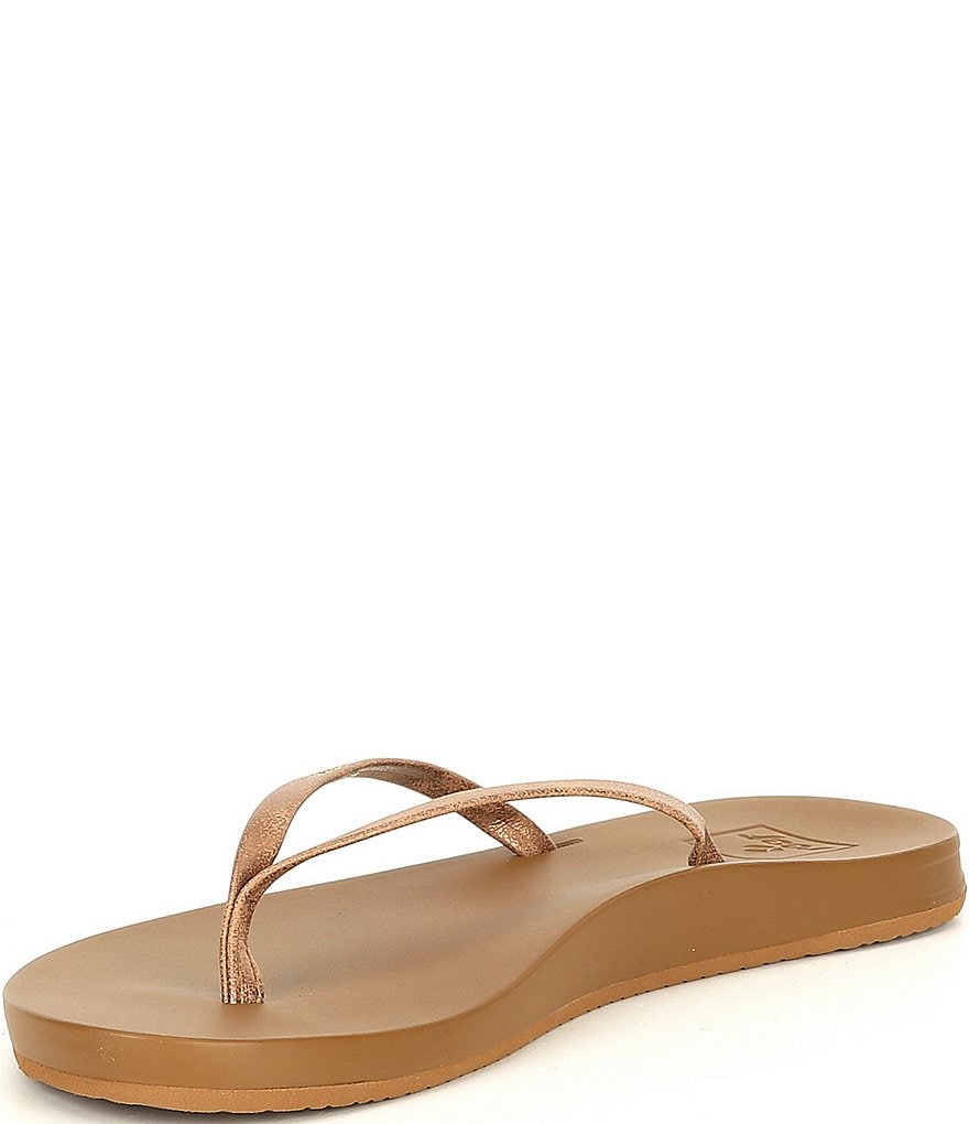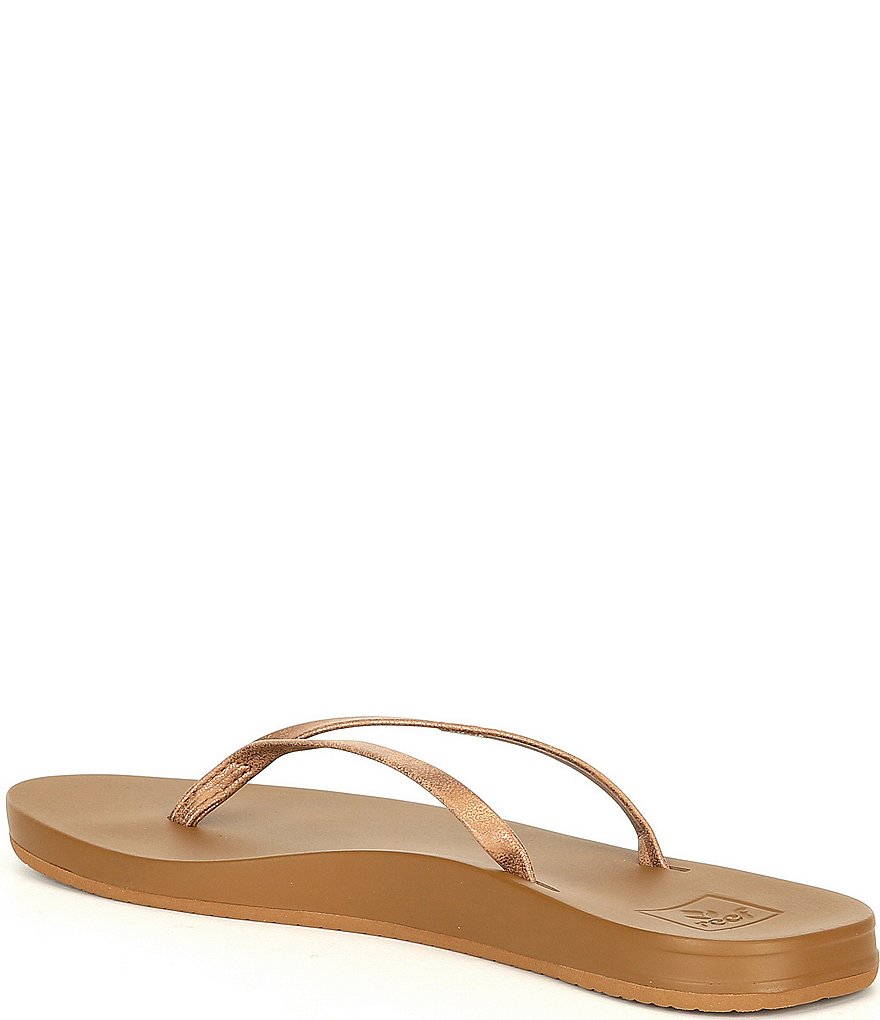 From Reef, the Women's Cushion Slim Metallic Flip Flops feature: