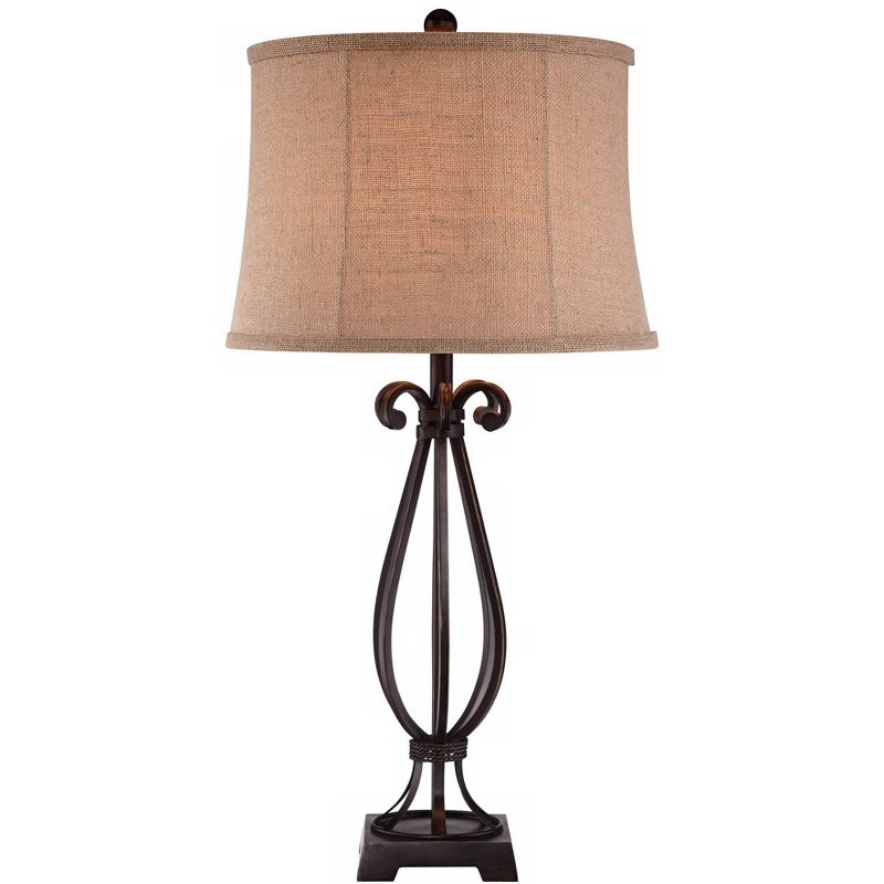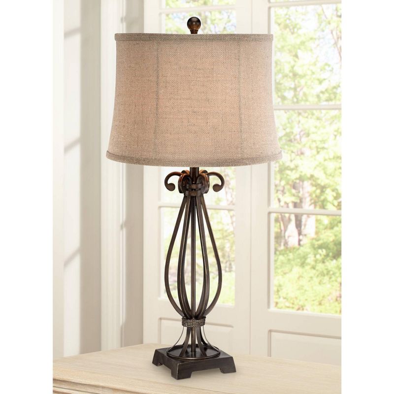 Allow the Taos iron table lamp to add a bit of classic, simple style to your home. With a scroll pattern iron base, this table lamp exudes elegance. An effortless burlap shade diffuse a warm glow of light. Bring tasteful traditional style to your home with the Taos Scroll Iron table lamp.