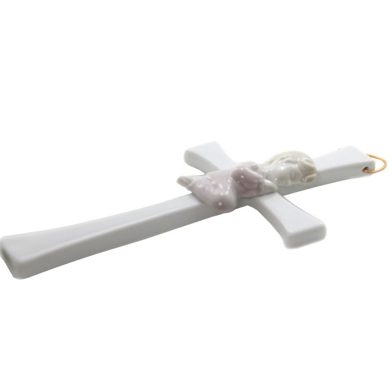 A Contemporary Looking White Cross With A Little Girl Kneeling In Prayer On The Front.. New With Box. Measurements 7.75 In H X 4.0 In W X 1.0 In D. . Made Of Porcelain. No Assembly Required. Indoor Use Only. Imported