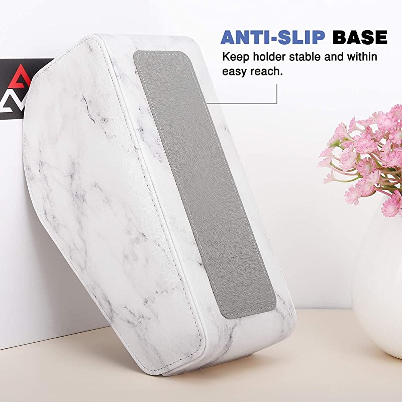 Holds things like ROKU remote, tv remote, fire tv remote, iPhone 8, iPhone 7, iPhone 6s and other smartphones smaller than 4.7 Inch. The TV remote caddy organizer fits easily on a coffee table or a desk, saving your room. The skid-proof base for staying firmly on the table, stable and reliable. *****Accent Your Home & Office - The elegant leather design provides you a be