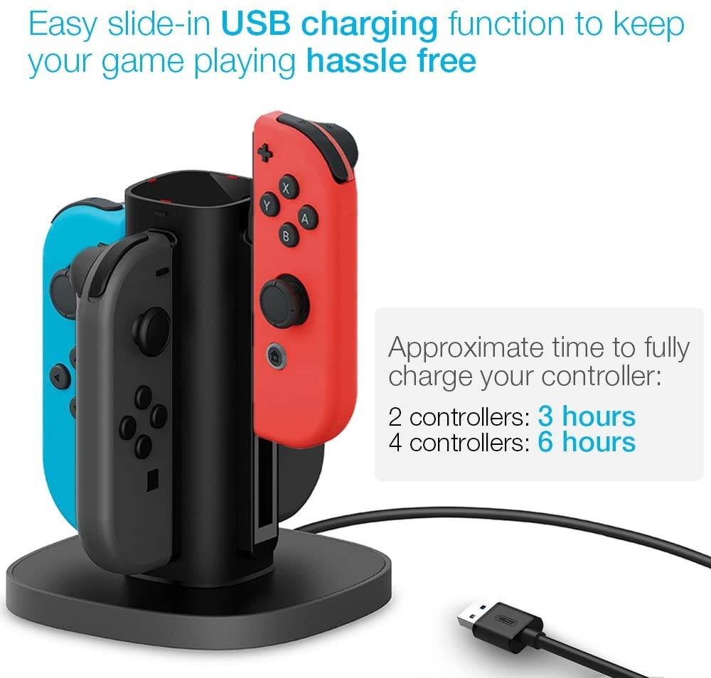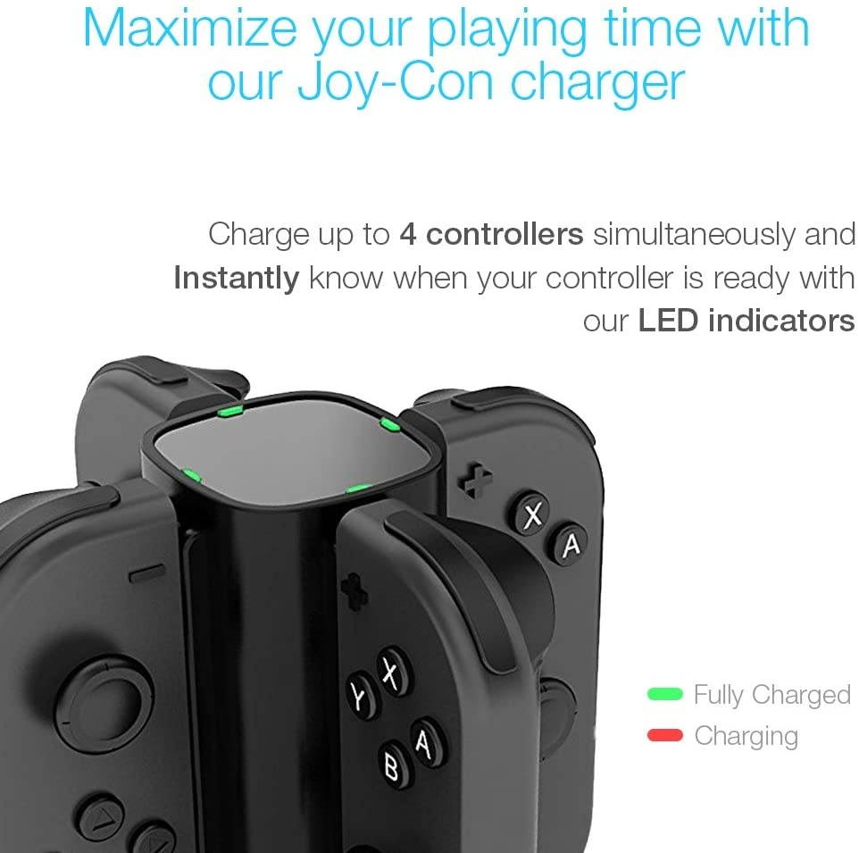 Charge 4 individual Joy-Con Controllers together, our stand offers 4 individual indicators for each of your controllers on charge.