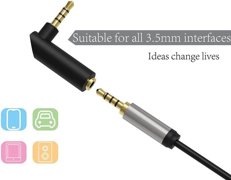 3.5 mm 1/8 inch TRRS male to 3.5 mm 1/8 inch TRRS female right angle connector can convert 3.5 mm straight connector into a convenient 90 degree plug. Used to keep cables in a good direction. Compatible with computer, game controller (like Xbox one controller), smartphone, Roku remote and so on. Help take relieve tension from headphone cable and extend the cable life, also great for tight spaces. Gold-plated connectors resists corrosion and no loss of sound quality. Easy to use, small size and portable. 4-Conductor(Tip, Ring, Ring, sleeve) adapter has headphone and microphone function.