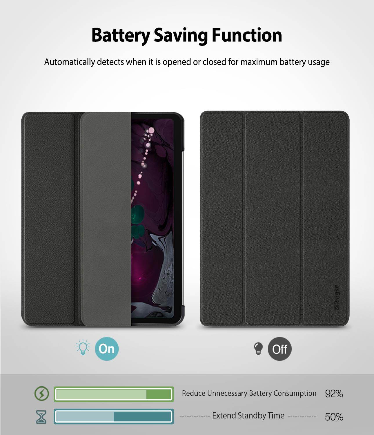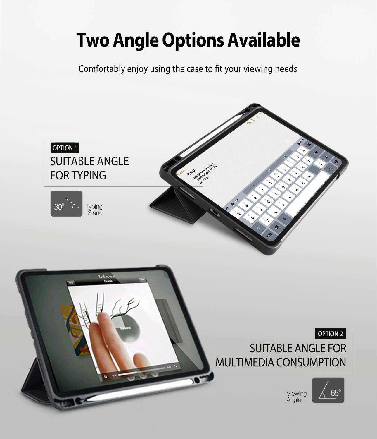 Ringke iPad case provides incredible shock-absorbing protection for your tablet. This case not only looks good but will lessen the amounts of scratches and dents that will injure your iPad by protecting the fragile corners and proving a front-cover to shield the screen when the iPad is not in use.