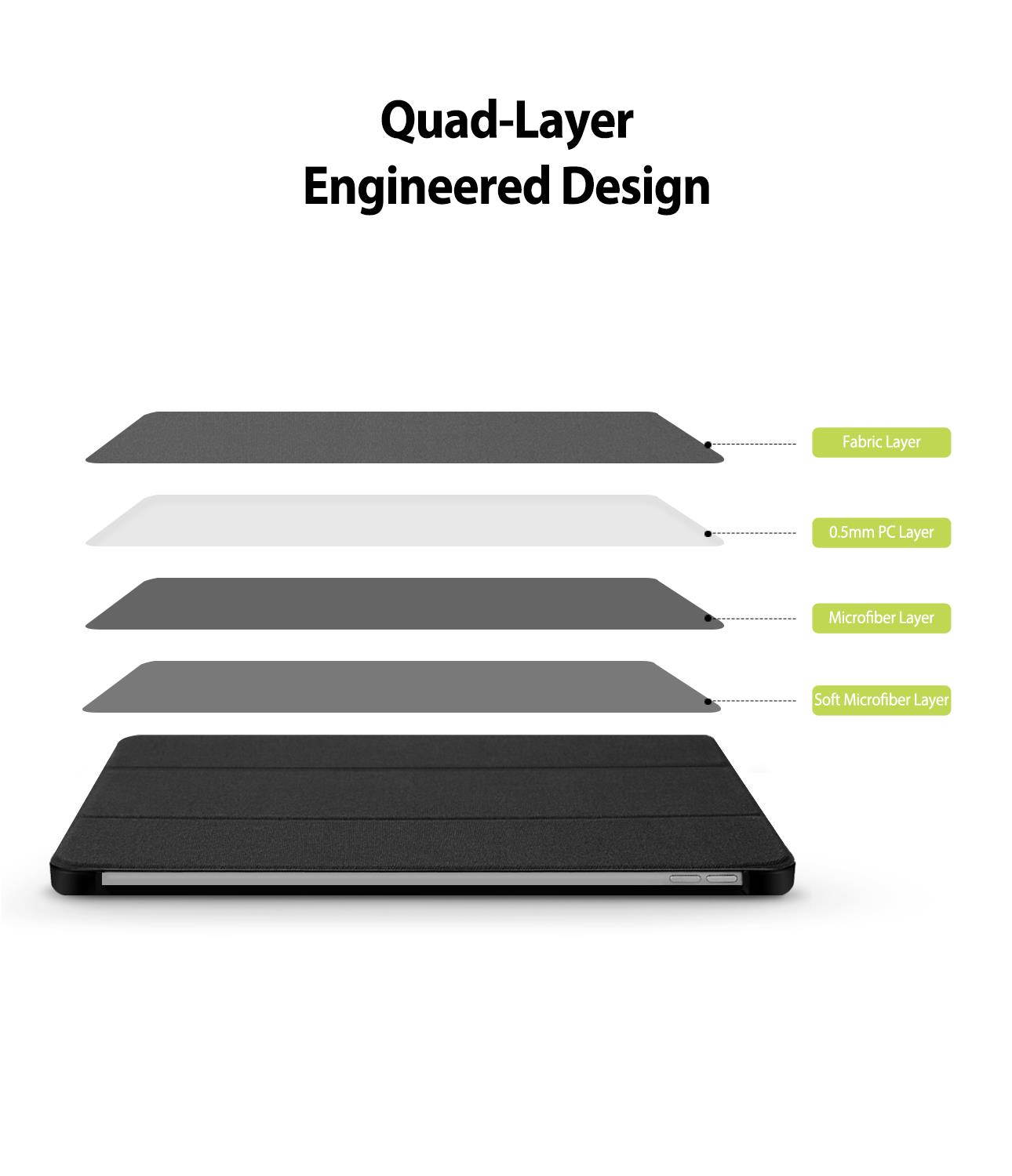 The TPU frame allows a soft, yet sturdy grasp around your iPad for maximum hold. The inside of the cover is lined with an exceptionally soft textile that will keep your screen clean and scratch-free.