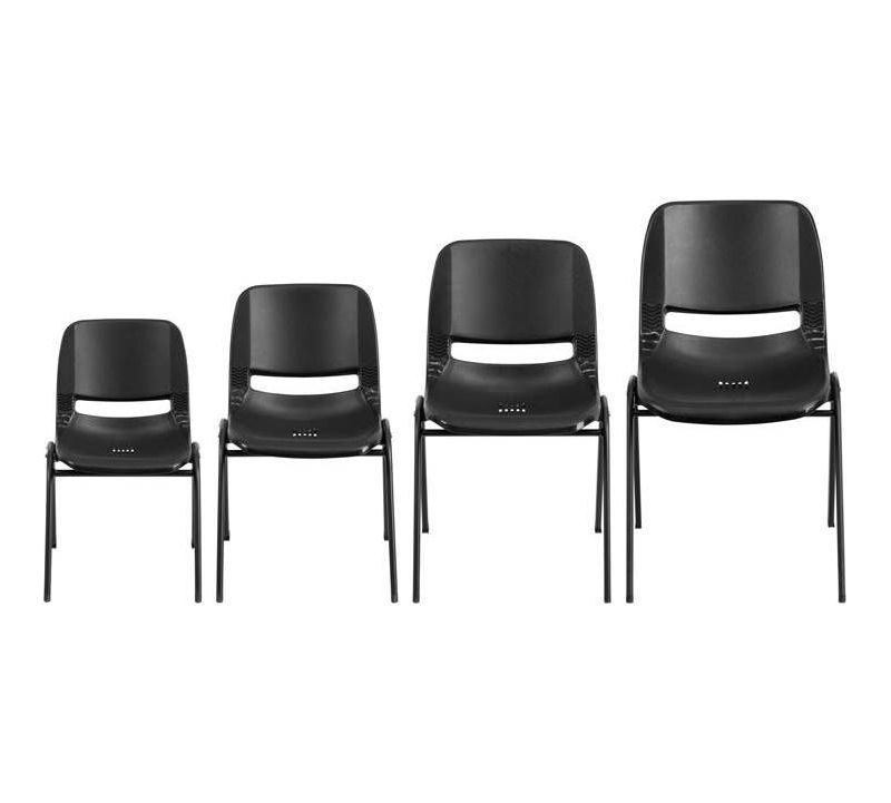Run a smooth after school program by having plenty of these heavy-duty plastic stack chairs around rambunctious kids who tend to be tough on seating. These classroom chairs are comfortable with an air-vented back and waterfall seat edge to put students at ease while learning. The 16" seat height is ideal for 3rd - 7th Grade students.