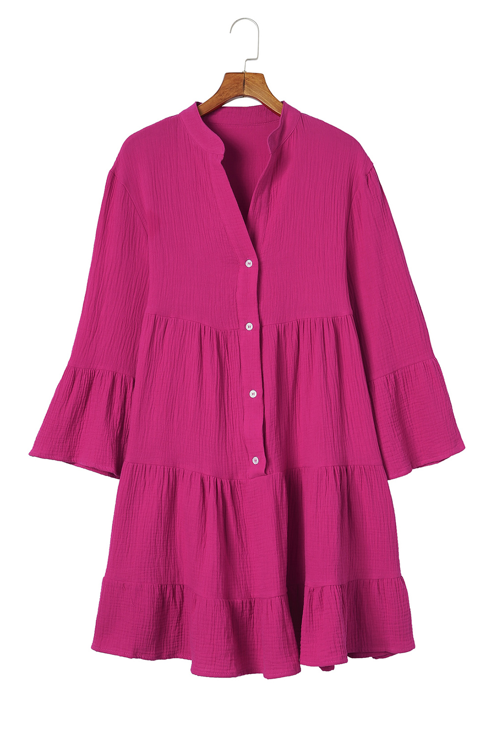 Rose Crinkled Tiered Split Neck Shirt Dress