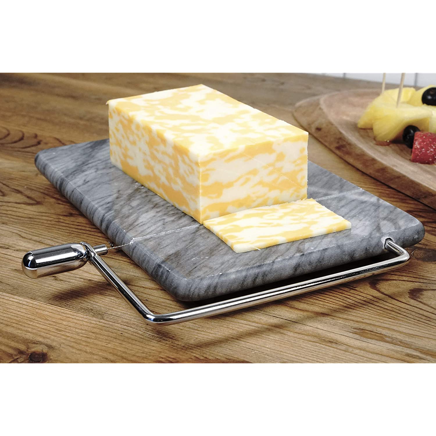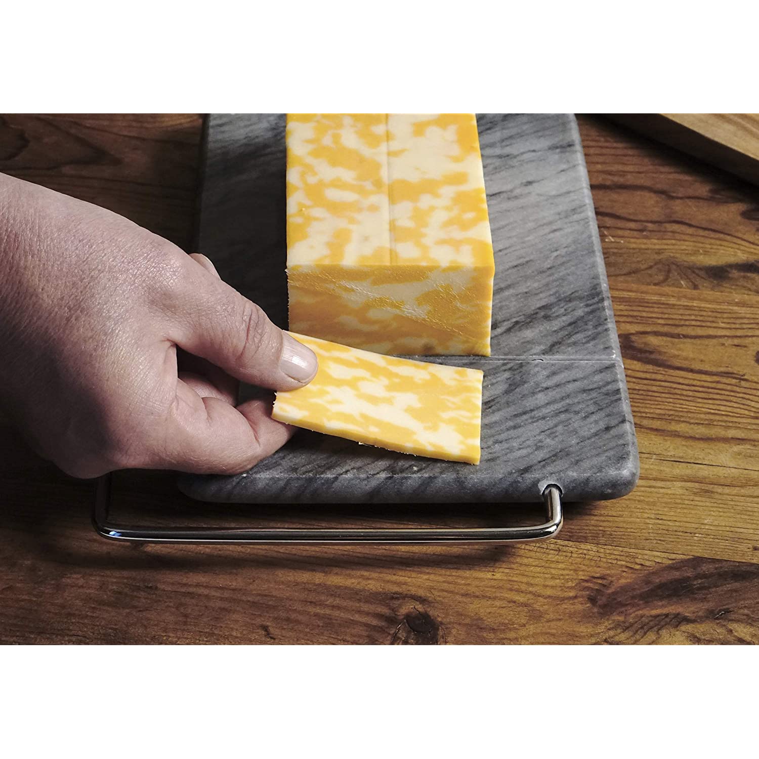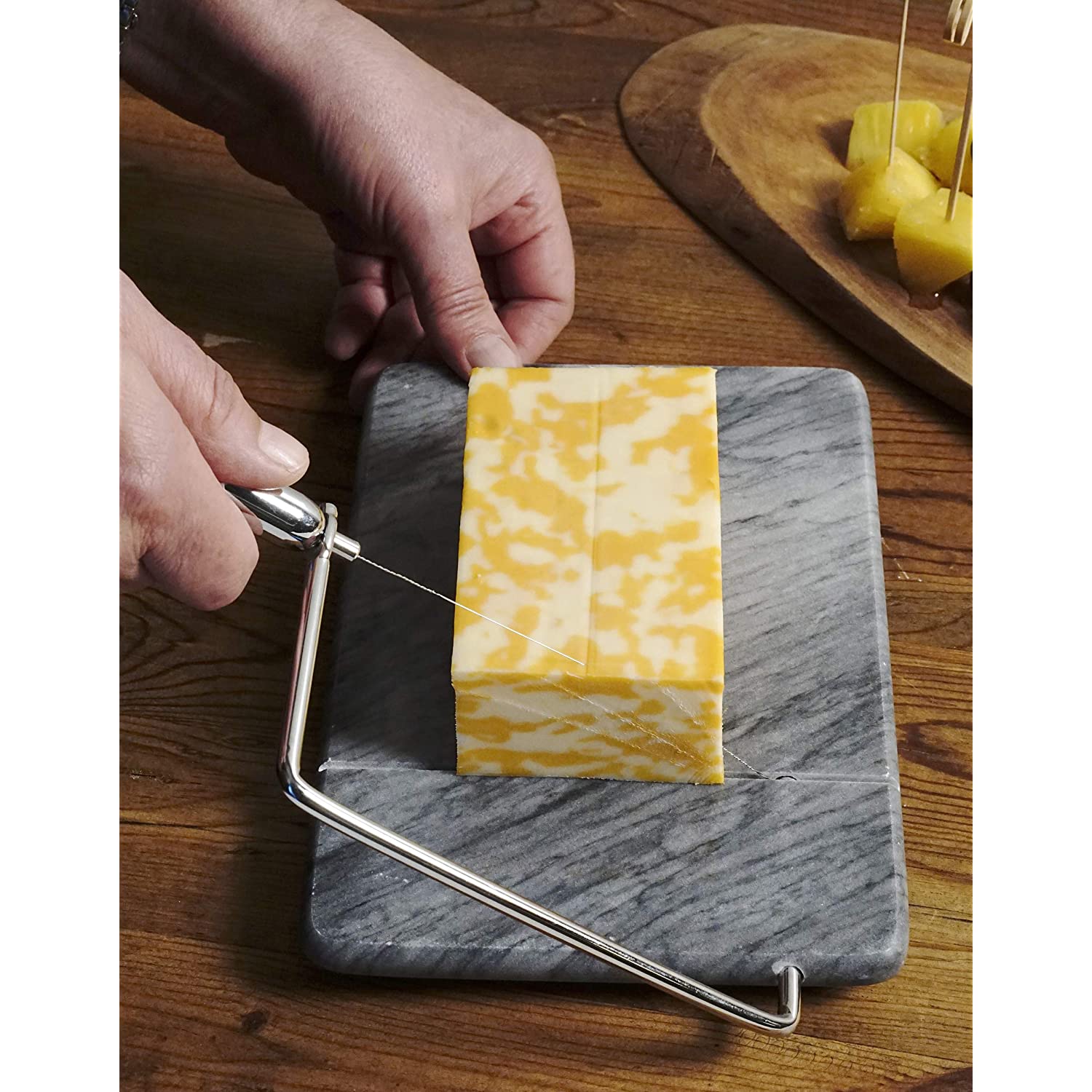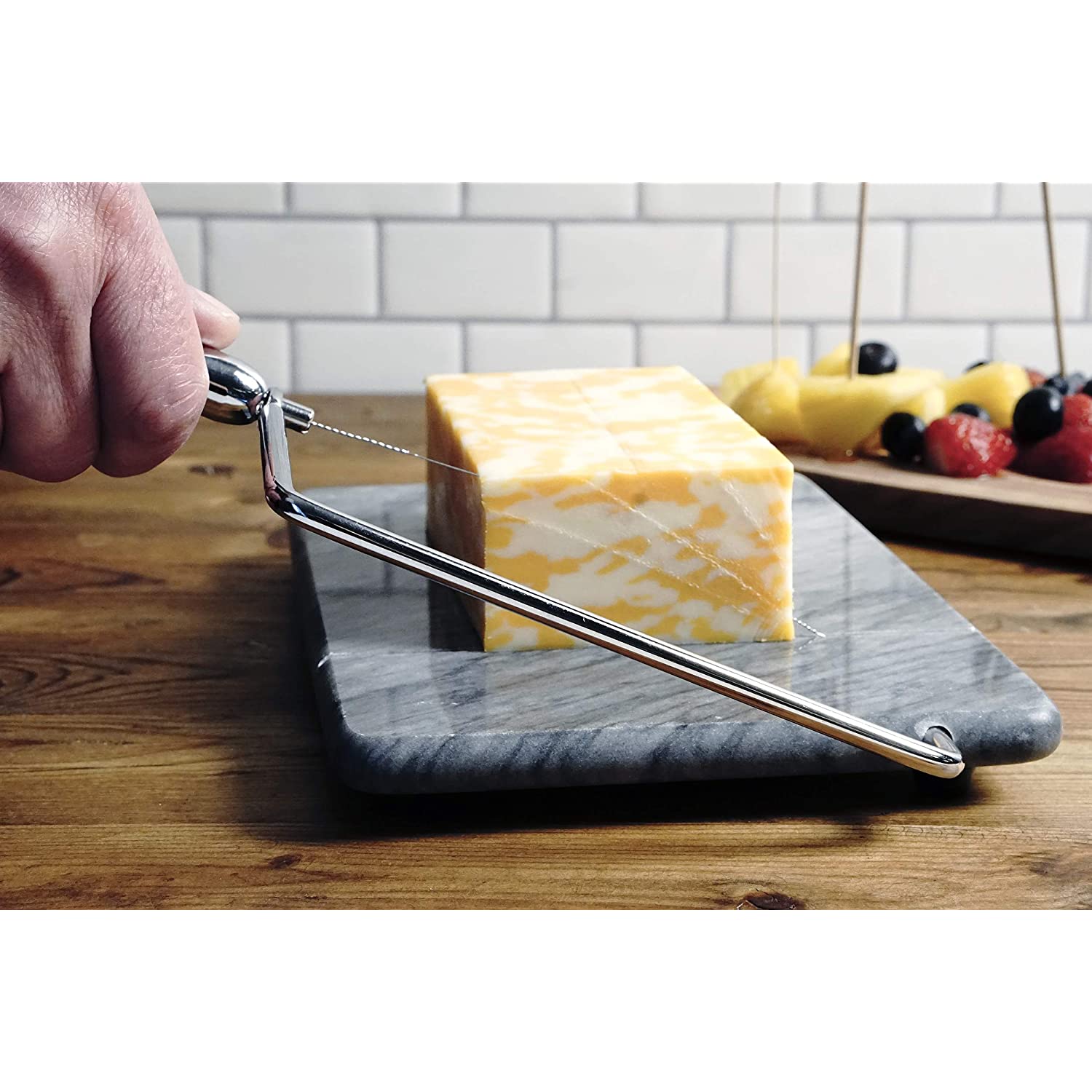 RSVP strives to offer quality kitchen products and cooking tools at competitive prices. This cheese slicer is a perfect example. Marble helps to keep cheese cool while the durable stainless steel wire cuts either hard or soft cheese. Beautiful natural marble with a stainless steel lever and wire cutter - each piece has a unique pattern and color. Protective rubber feet on the base. Measures 5-inches by 8-inches - comes with two replacement wires taped to bottom of cheese board. Handwashing recommended. When all the right people, and ingredients, kitchen tools, and food come together, we call this The Art of Gathering.