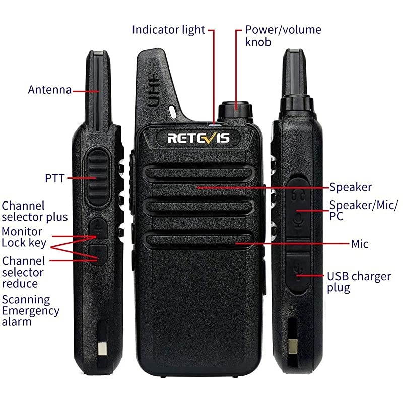 **********Pocket size and slim look is perfect use in commercial; compact and light weight allow easy to carry all day*****The two way radio is featured with rich features like VOX hands free; emergency alarm; up down channels changes button; scan; squelch and more*****Rechargeable Li-ion battery can last 12 to 24 hours; USB charging design allows you charge the radio in car; power bank and etc*****Reliable and durable belt clips ensure install and remove quickly; need not any tiny screws to fit them*****Working straight out of the box with each other; the channels are very clear and the radio is very easy to use