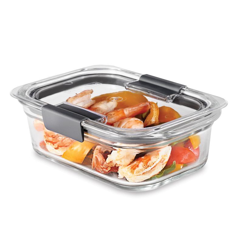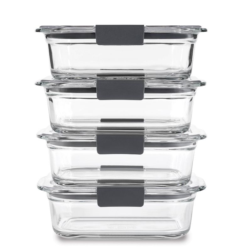 Rubbermaid Brilliance Glass Food Storage Containers are intelligently crafted, and beautifully designed. These glass containers have clear plastic lids with a 100% airtight, leak-proof seal and secure latches to make reheating and storing easy. Built-in vents under the latches allow steam to escape so you can microwave food splatter-free, without removing the lid. Crystal-clear lids and bases make it easy to see what’s stored inside. The lids are made with StainShield™ plastic so they're stain and odor resistant, helping them stay looking like new. These food storage containers are space saving, with a modular design for perfect organization and stacking in your fridge or cabinet. The universal lids fit across all Rubbermaid Brilliance containers, regardless of material type. These Rubbermaid containers are BPA-free, microwave-safe, dishwasher-safe, and freezer-safe. The glass container bases are also oven safe up to 450 degrees F.