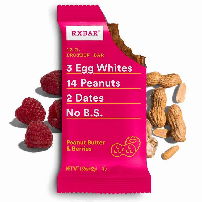 A REAL FOOD PROTEIN BAR: Our Peanut Butter & Berries protein bars are made with raspberries, peanuts, and a few other real food ingredients - egg whites for protein, dates to bind, and nuts for texture. Contains 12g of protein, 5g fiber, and is gluten free. Peanut Butter & Berries RXBAR is great for the office, an on-the-go snack, or just a wholesome treat. This gluten-free, guilt-free protein bar is the perfect wholesome snack for a healthy lifestyle. Grab one bar for a protein-packed pre or post workout snack and get the energy you need