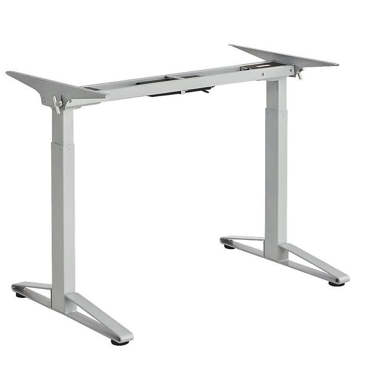 • Electric height-adjustable desk is great for use in small offices, home offices, and personal workspaces. Unique aesthetic design with white laminate top and steel base with silver powder-coated finish. Adjustable height 30.75"-50.25" is an ultra-easy sit-stand solution.