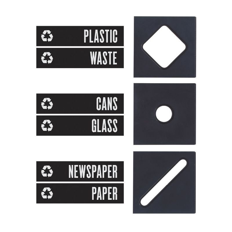 • Dedicated lid organizes the collection of paper, cans, glass and waste. Hinged lid has opening for specific materials.