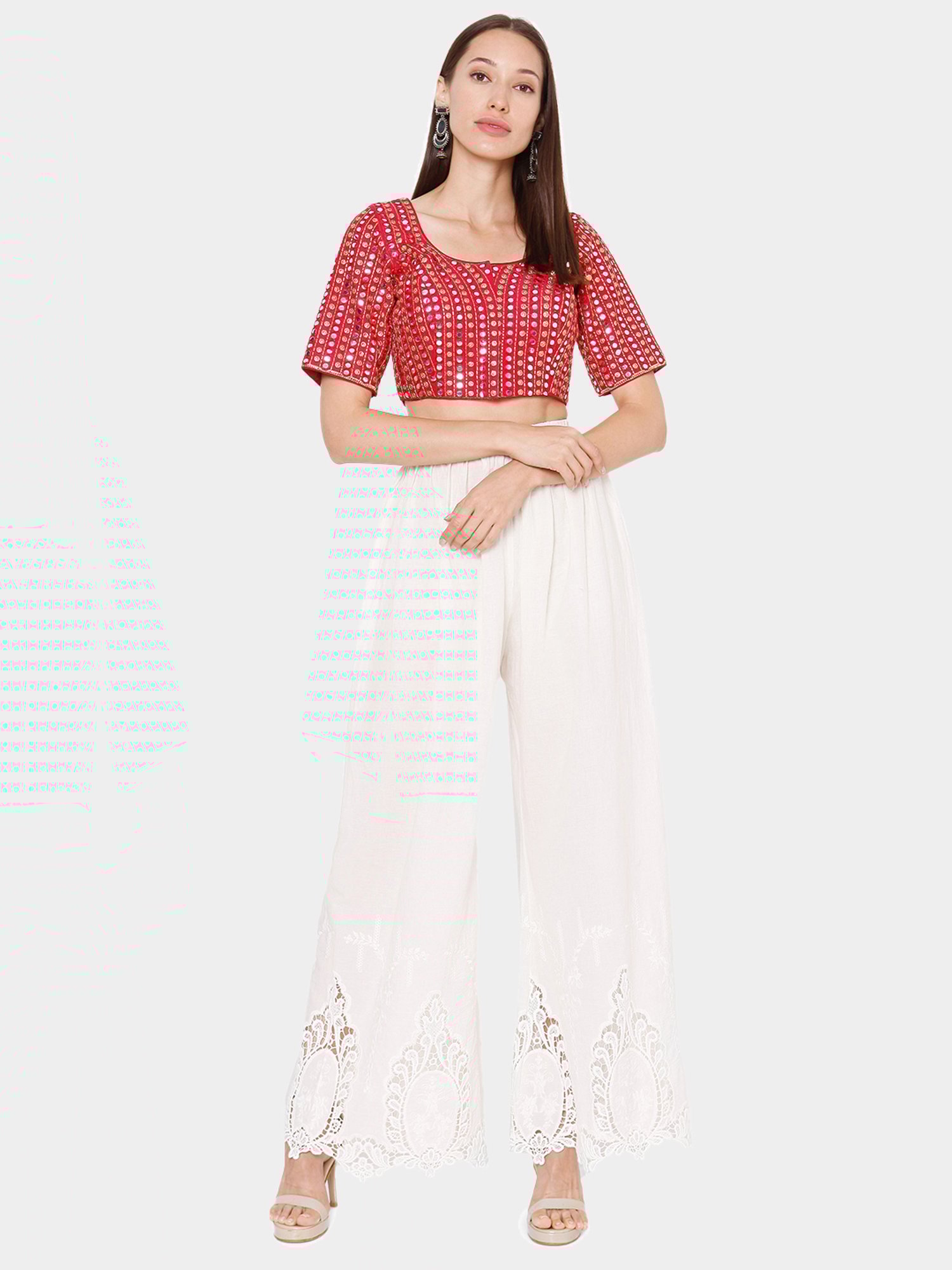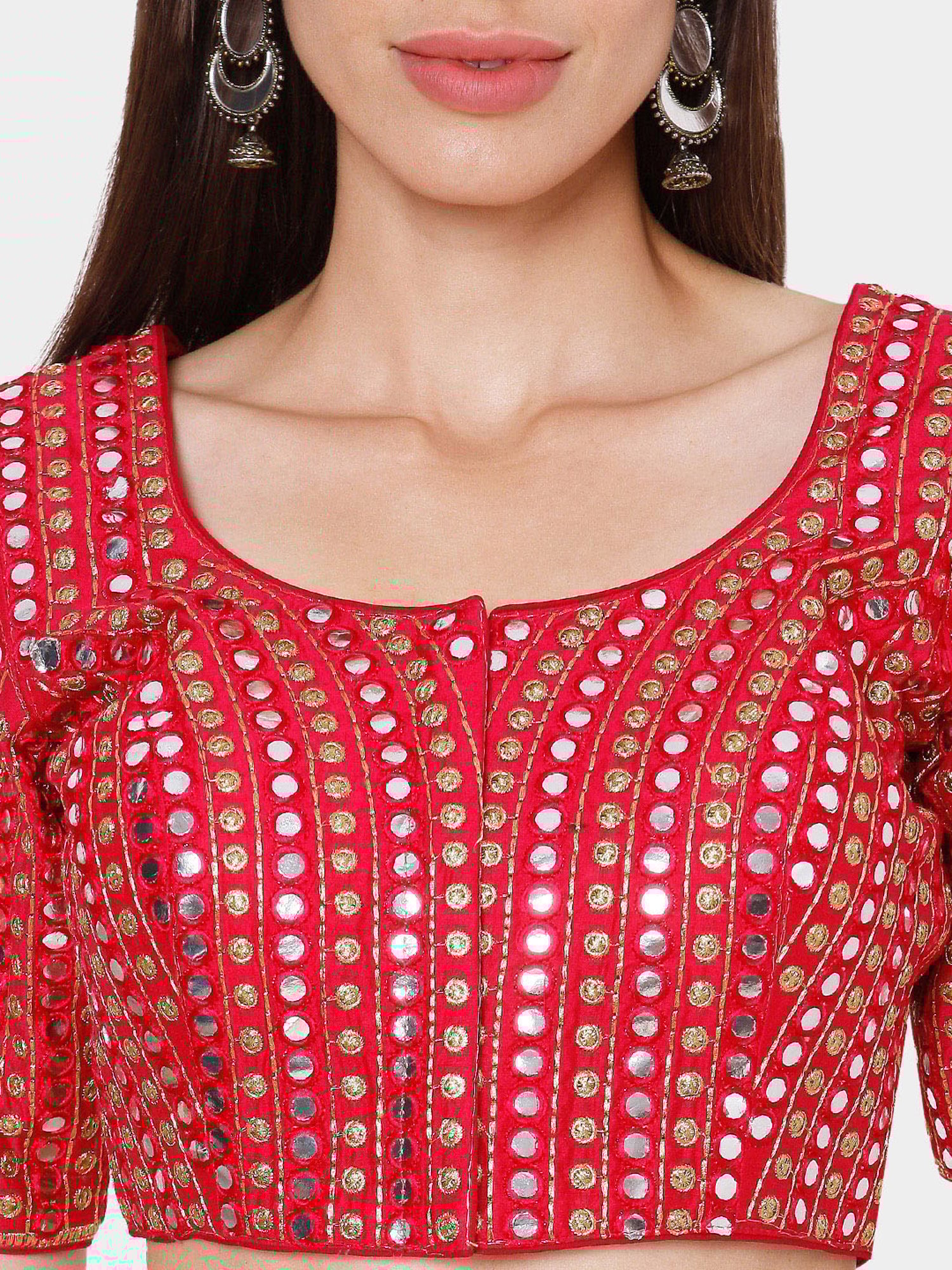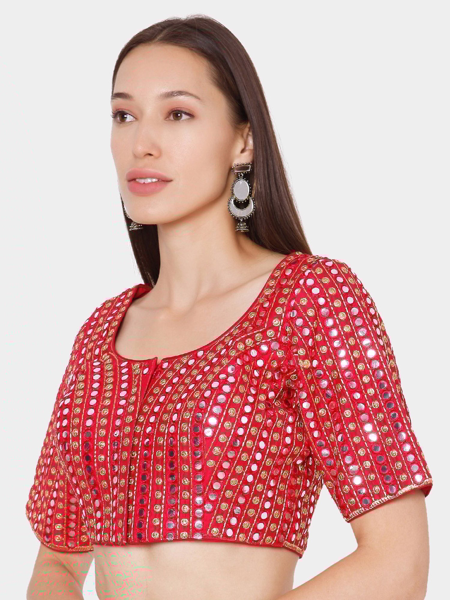Be the cynosure of all eyes in this stunning red embroidered blouse from the house of Salwar Studio. Beautifully crafted in premium silk blend for soft comfort, this versatile piece can be matched across sarees and lehngas for multiple occasions. Pair it with a contrast chunni to make a definitive fashion statement.