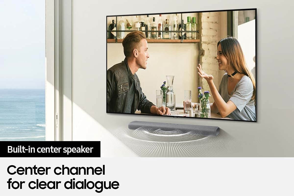 Samsung QN55QN90AA Neo QLED 4K Smart TV - Neo Quantum Processor 4K - HDR 10+ Certified - Quantum Matrix Contrast - 3840 x 2160 Resolution - Motion Rate 120 - Ultra Viewing Angle - Contrast Enhancer - Quantum HDR 32x - Auto Motion Plus - LED Clear Motion - Dolby Digital Plus - Dolby 5.1 Decoder - Object Tracking Sound - Q-Symphony - Dialog Enhancement - 60W Sound Output - 4.2. 2 Channel Speakers - Woofer - Multiroom Link - Bluetooth Audio - Tizen Smart Service Operating System - Web Browser - Voice Activated Assistant - 200 x 200 VESA - TV to Mobile Mirroring - Mobile to TV Mirroring - Auto Game Mode - Game Motion Plus - Super Ultra Wide Game View - Wifi - Bluetooth - Adaptive Picture - Active Voice Amplifier - Adaptive Sound Plus - AI Upscale - Brightness/Color Detection - Office 365 Cloud Service - English, Spanish, and French OSD Language - 4 HDMI - 2 USB ( 2.0 ) - 1 Digital Audio Out (Optical) - 1 Ex-Link (RS-232C) - Ethernet - HDMI A / Return Channel Support - eARC - HDMI Quick Switch - 4 Bezel-Less - Solid Slim - Bending Plate Stand (Sand Black) - Eco Sensor - Solar Cell Remote - ( 48.3"W x 9.3"D x 30.3"H ) - (Titan Black) with a Samsung HW-A650 Soundbar (2021) - Wireless Subwoofer Included - 430 Watt Total Power - Built-In Center Speaker - Dolby Digital 5.1 - DTS Virtual X - Game Mode - Bass Boost - Adaptive Sound Lite - Wireless Surround Sound Ready - 1 HDMI In - 1 Optical In - 1 HDMI Out - Bluetooth - One Remote Control and Wall Mount Kit Included - HDMI ARC - HDMI CEC - Bluetooth Multi Connection - ( 2.3"W x 4.1"D x 38.6"H ) - (Black)