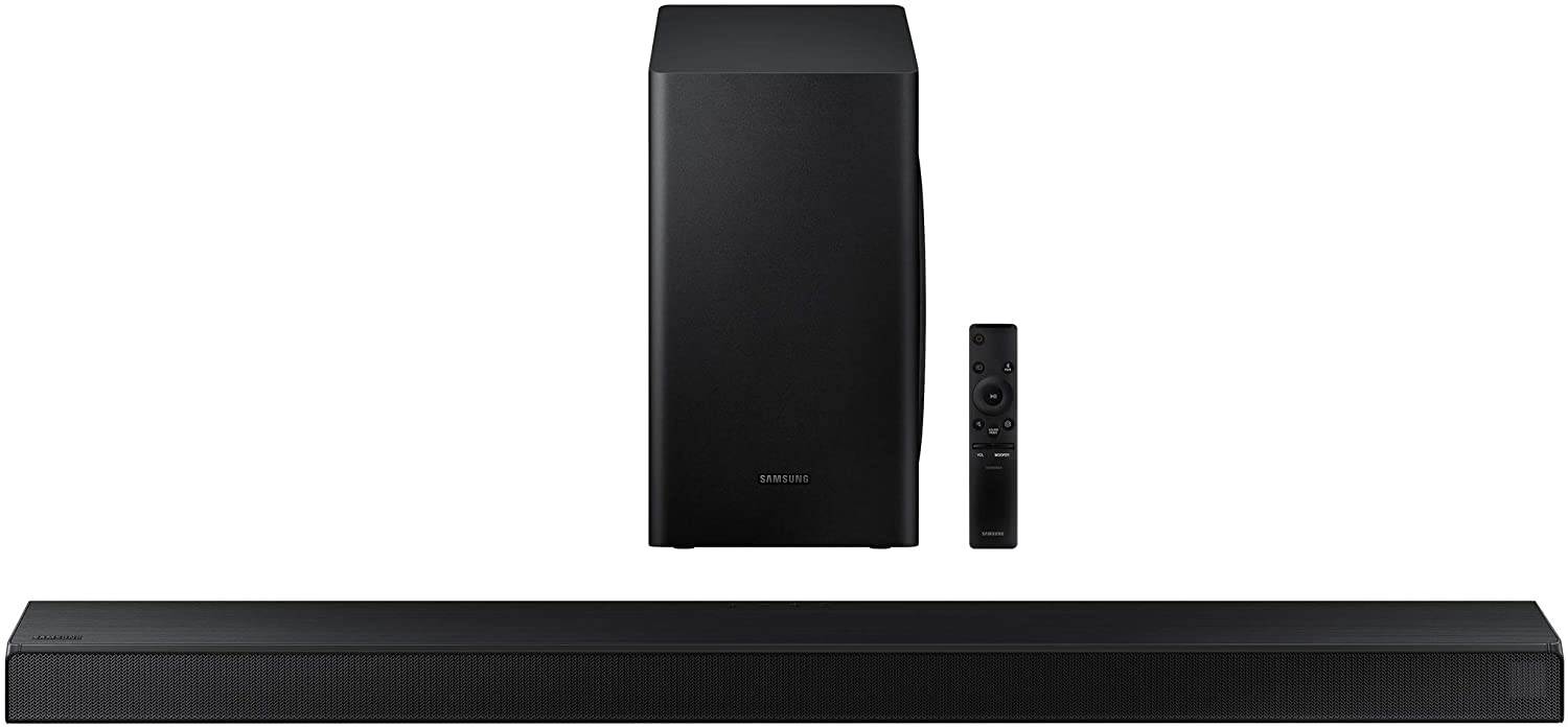 Samsung QN75Q80TA QLED 4K Ultra HD Smart TV - Boundless Design - Slim Bezel - Direct Full Array 12x Backlighting - Quantum HDR 12x - Energy Saving - Quantum Dot - Supreme UHD Dimming - 240Hz Motion Rate - Object Tracking Sound - Quantum 4K Processor - Wall Mount Compatible - Ambient Mode - Dolby Audio - Multi-Room Link - 60W RMS - Bluetooth - Built-In Wi-Fi - Virtual Assistant Compatibility - Auto Motion Plus - Bixby - Game Mode - 4 HDMI - 2 USB - Ethernet - Wall Mountable - (65.8"W x 12.5"D x 40.8"H) - (Titan Black) with a Samsung HW-T650 3.1 Channel Soundbar with Wireless Subwoofer - Center Channel Speaker Built In - 3D Surround Sound - DTS Virtual;X - Crystal Clear Dialogue - Clear Directional Sound - 39mm x 39mm Tweeter - 340Hz Output Power - 30W Tweeter Power - 160W Subwoofer Power - Wireless Subwoofer Type - Wall Mounting - Dolby Digital 5.1 Channel - Surround Sound Expansion - Multiple Sound Modes - DTS Digital Surround - 2 HDMI - Bluetooth Multi Connection - Deep Rich Bass - Game Mode Audio Boost - Wall Mount Kit Included - Samsung One Remote - (38.6"W x 11.9"D x 13.9"H) - (Black)