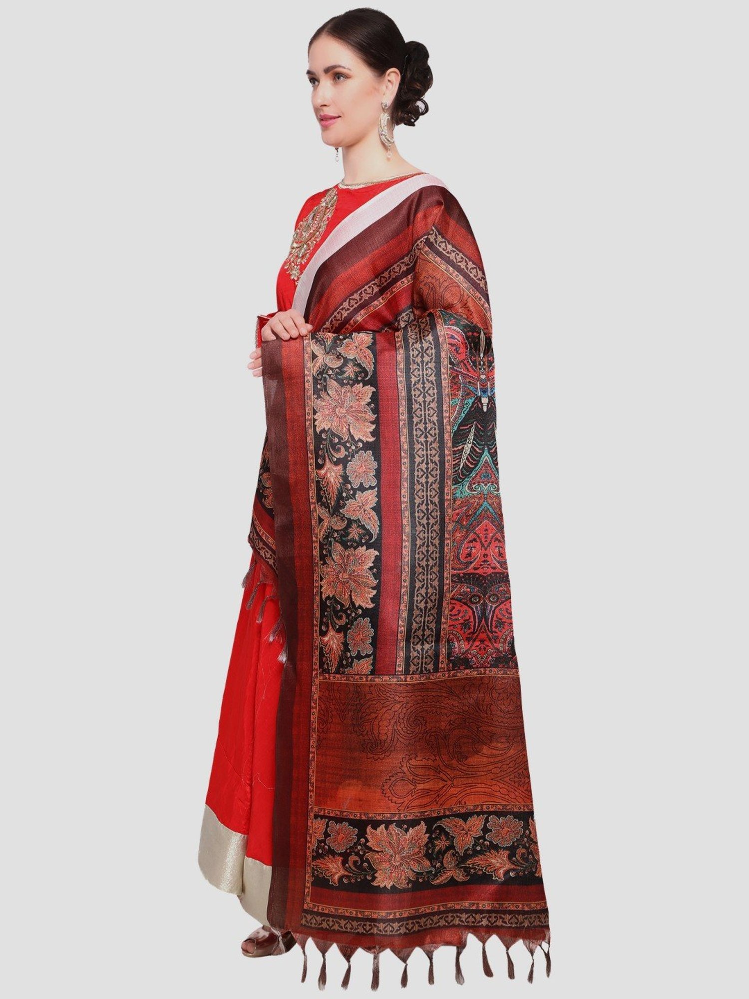 Curate a stunning look by wearing this multicolored dupatta from Saree Mall. Tailored to sartorial perfection from premium quality fabric, it assures a soft and soothing touch against the skin. Match it with a kurti set to create a traditional look.