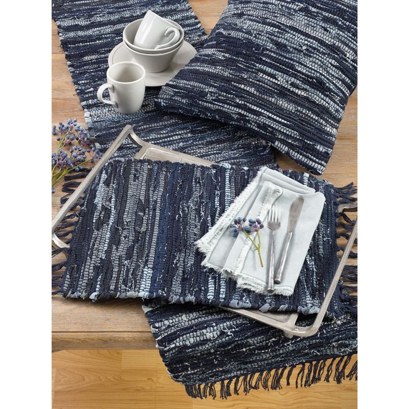 Set a boho chic mood with this beautiful Denim Chindi Placemat set. Its thick woven texture and tasseled edges give dimension to your table while preserving a down-to-earth, casual style. Pair with the chindi runner for a cohesive look.
