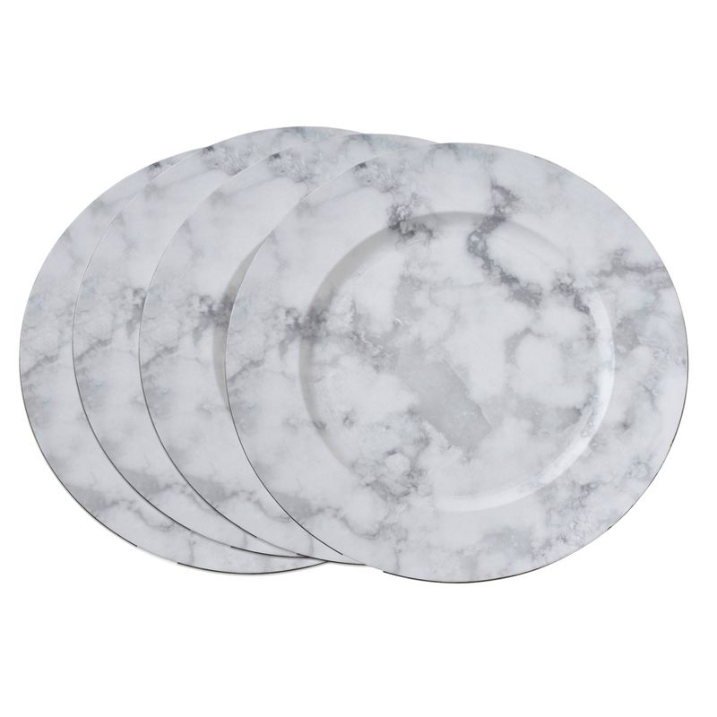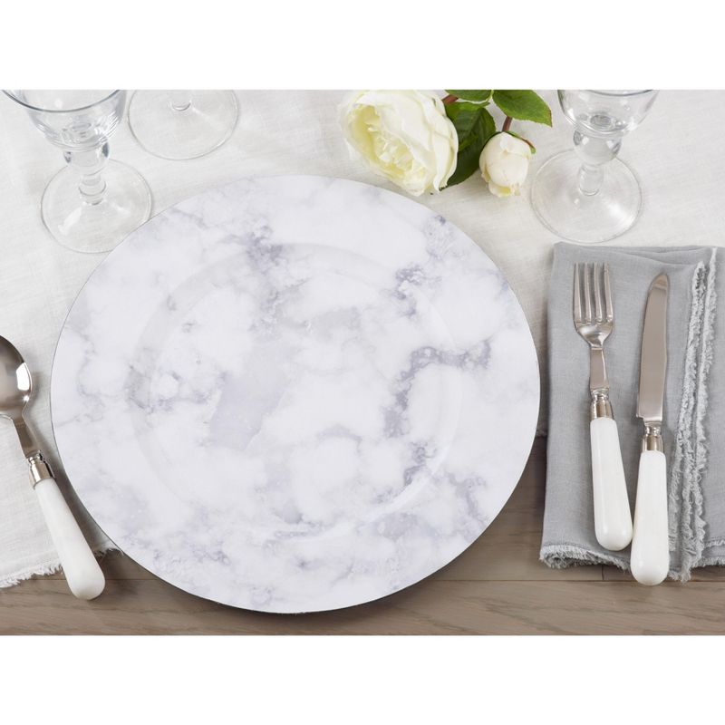 Create an elegant table décor with these lovely Marble Design Charger Plates. The set is highly versatile and you can dress it up with golden tone cutlery and glassware or dress it down with mixed casual pieces. Pair with classic candlesticks and table runner for a dinner your guests will remember.