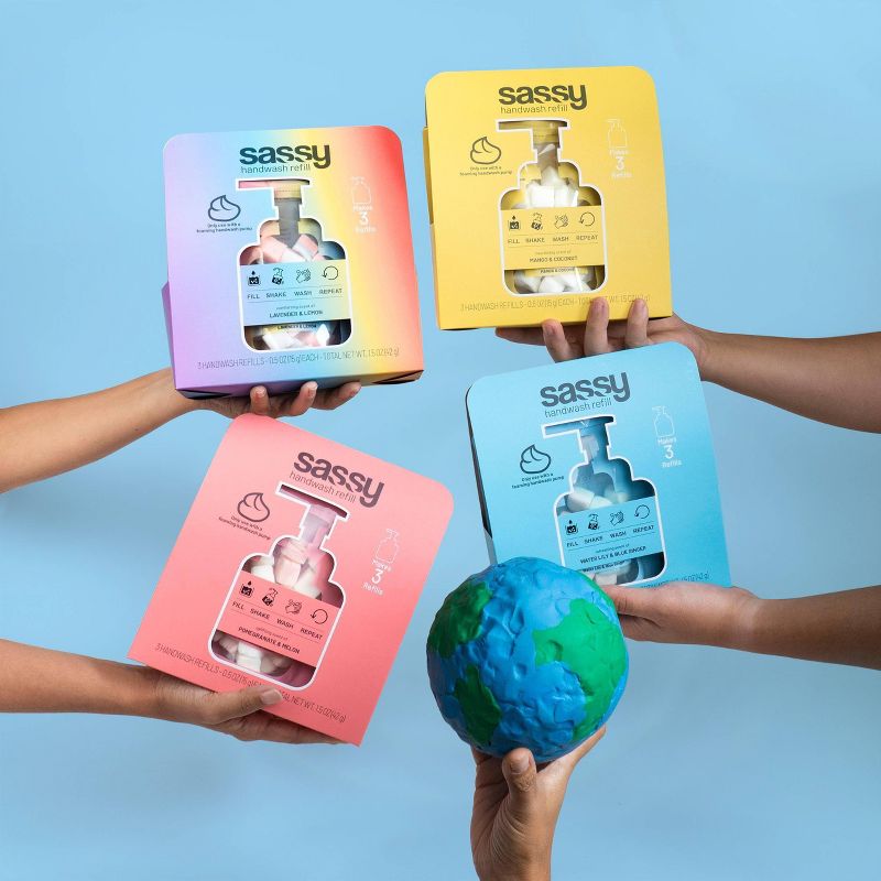 It’s time to rethink your hand soap and how you refill it. SASSY Refillable Foaming Handwash has unique dry foam cubes that mix with water making it easy to refill over and over again. SASSY handwash refill bundle will fill up your SASSY foaming handwash bottle 3 more times!