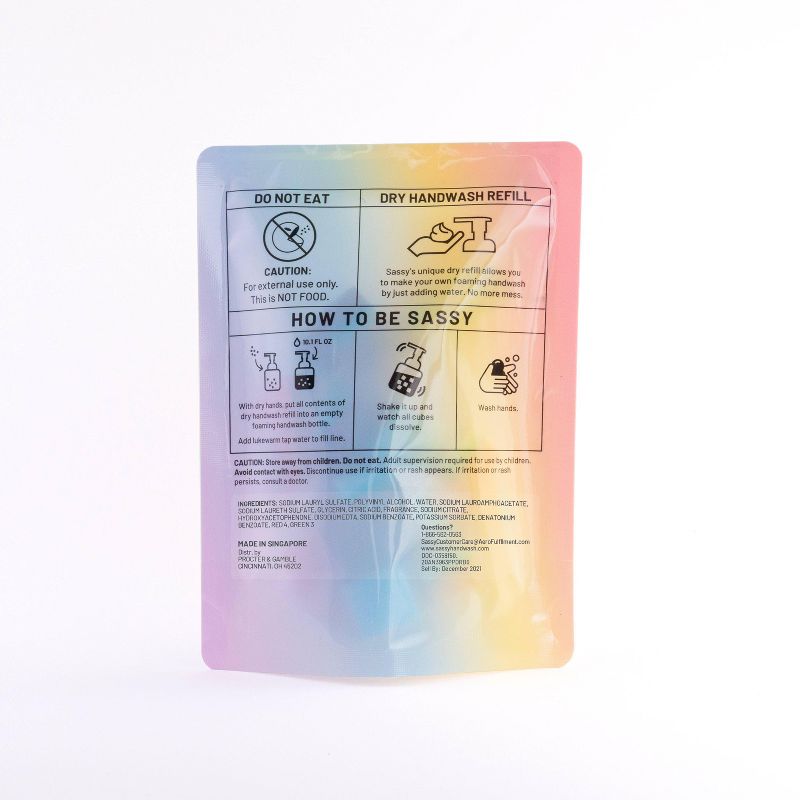 Just ADD (1) 0.5oz pack of SASSY dry foam cubes to your SASSY refillable foaming handwash bottle and slowly ADD warm water. SHAKE It Up. WASH your hands with freshly made foaming handwash. REFILL when ready. REDUCE. REFILL. REUSE.