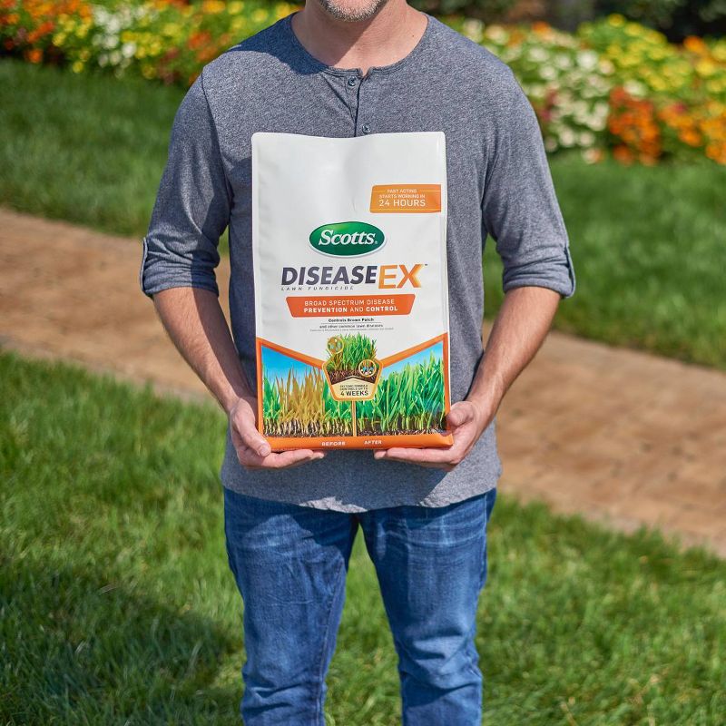 Scotts® DiseaseEx™ Lawn Fungicide offers a formula to cover a wide range of problem lawn diseases. This new product is fast acting and continues to control lawns diseases for up to 4 weeks. Scotts® DiseaseEx™ controls common diseases like: Brown Patch, Stem and Stripe Rust, Red Thread, Powdery Mildew, Pythium, Southern and Typhula Blight, Pink Patch, Nercrotic Ring Spot, Summer Patch, Yellow Patch and more.