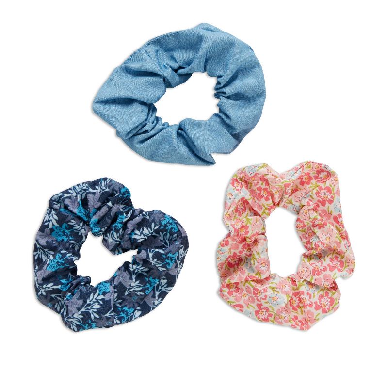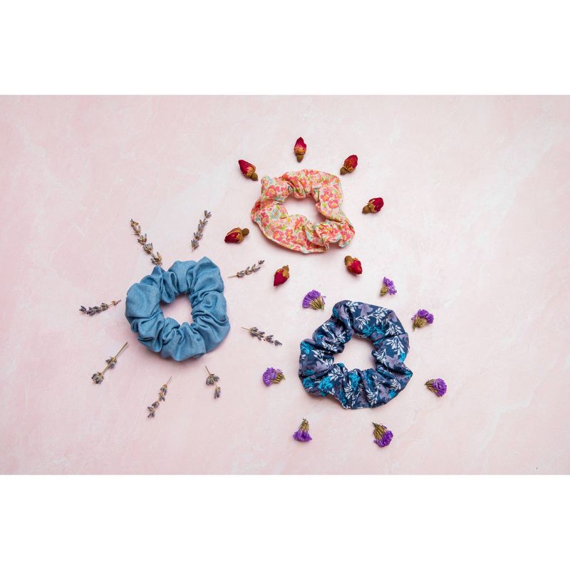 •3-pack of denim scrunchies