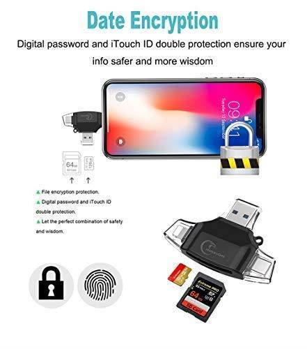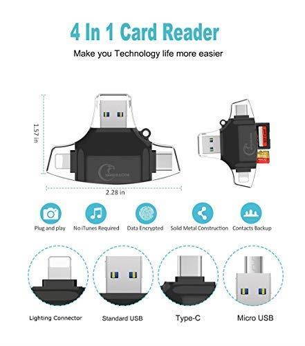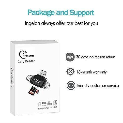 ??4 In 1 Connector-Ingelon card reader has four different interfaces( Lighting connector + Micro USB+Type C + USB 3.0 connector). Makes it compatible for all your devices.