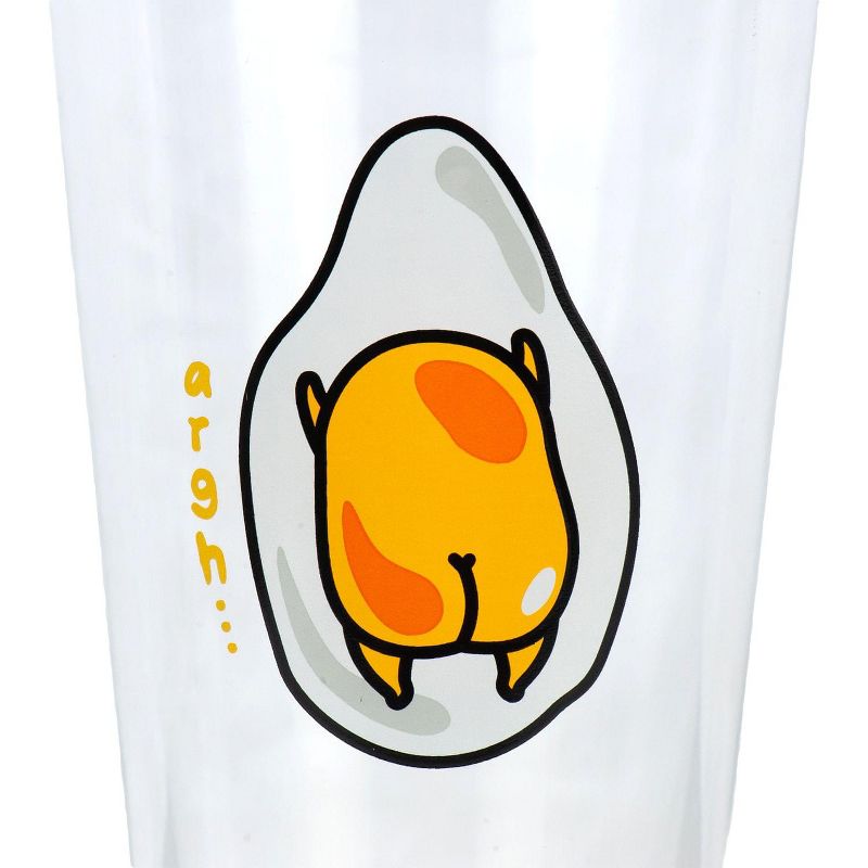 • Clear glass features Gudetama facing backwards with the caption "Argh".