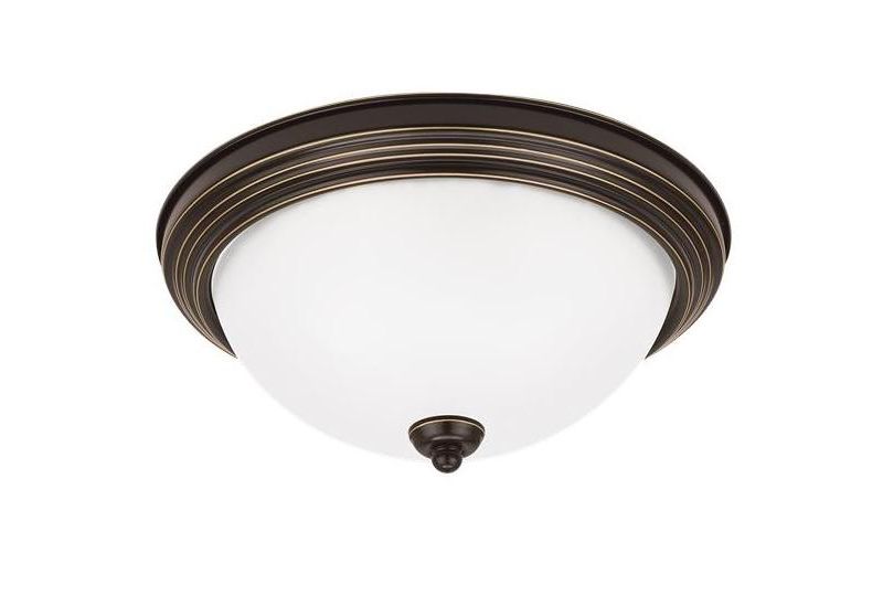 The Sea Gull Lighting Geary two light flush mount fixture in burnt sienna supplies ample lighting for your daily needs, while adding a layer of today's style to your home's décor. Adaptability takes center stage with the Geary Collection. This series of traditional up-light pendants, semi-flush and flush-mount fixtures feature decoratively bowed arms and constructed of rectangular steel tubing. Geary is a true cross-collection piece, offered in four beautiful finishes Blacksmith, Brushed Nickel, Burnt Sienna and Heirloom Bronze. The Geary has a universal appeal matching 24 different Sea Gull Lighting interior collections. Offering subtle style with practical design, Geary is at home in almost any room. The fixtures have a fluid movement with a traditional look to complement a wide range of decor.