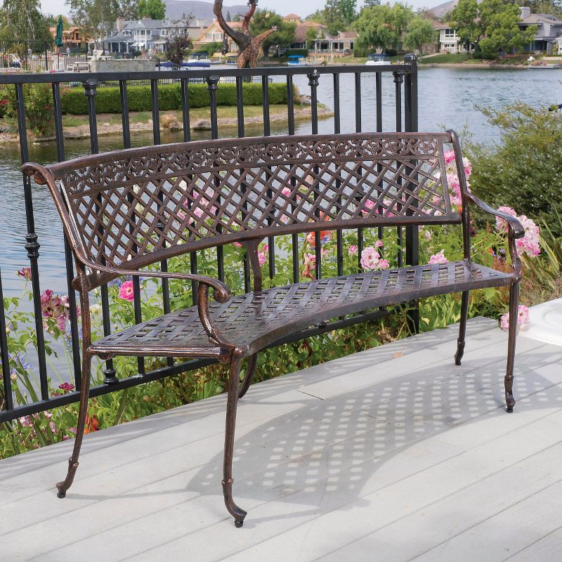 The Christopher Knight Home Sebastian Cast Aluminum Patio Sector Bench is a perfect transition piece. The outdoor curved loveseat mixes a seating solution with style and offers a perfect look to any outdoor patio. The curved design of this bench allows for entertaining and intimacy. Place this Christopher Knight Home Sebastian Cast Aluminum Patio Sector Bench in your garden so you can enjoy the flowers and the birds. Add extra seating with style to your backyard, garden or patio with this bench.