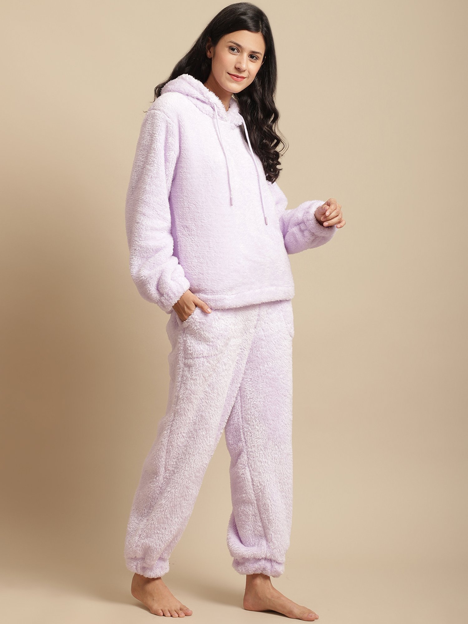 Spend the cold days and nights of the new season well ensconced in the cosy warmth of this terrific lavender hoodie with lounge pants set from the latest range of Secret Wish. Beautifully tailored in prime quality polyester for a soft, gentle feel and snug comfort, their well designed silhouette ensures ample room for movement while the pleasing color-block pattern assigns them style and flair. We're sure you'd love cuddling in them every evening through the chilly months!