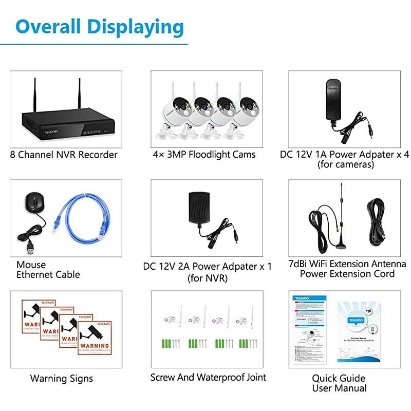 Package Included: 1 8 Channel NVR System 4 Floodlight IP Camera 1 2 TB Hard Drive 1 User Manual 1 Gift Packaged Box