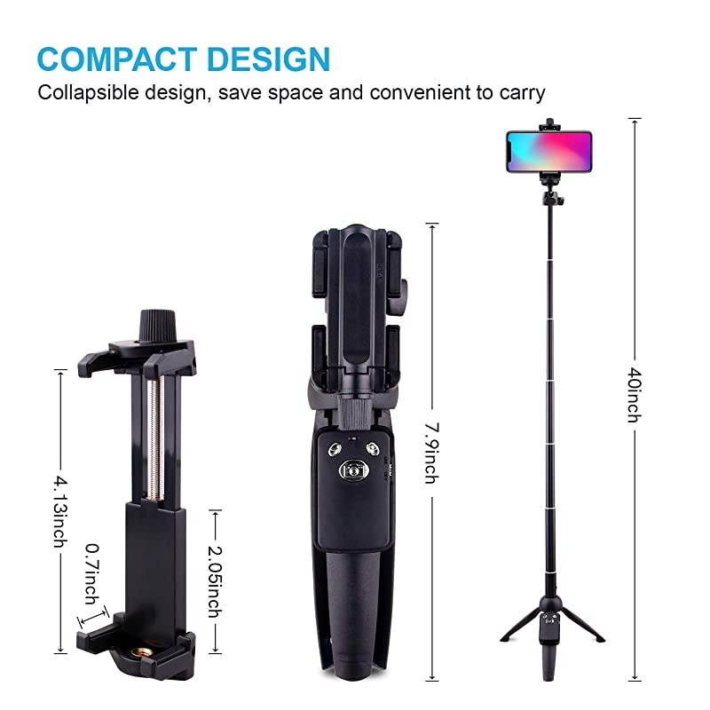 Size: 40-54 InchWhy Do You Need A Selfie Stick Tripod? Not only is it a selfie stick, but a tripod as well. No more asking "can you take this pic? "