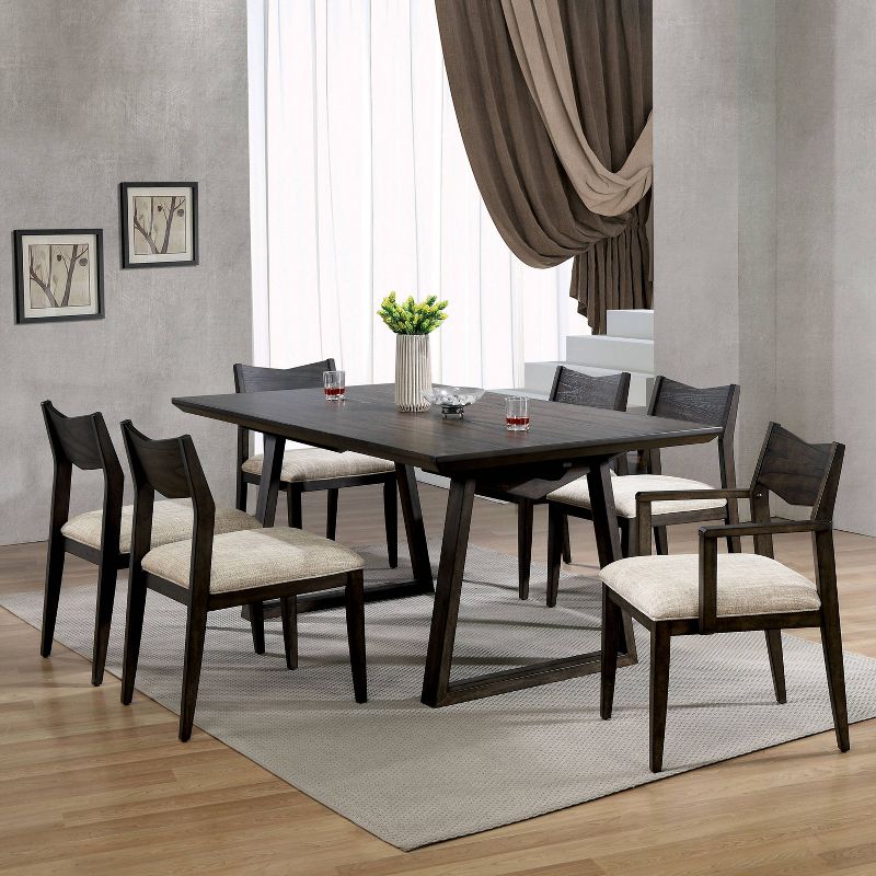Include these accent chairs in your home office. A wood grain detail and upholstery make for a sophisticated design. The dark walnut armchair is a chevron-shaped low back. Tapered legs hold up the ivory fabric seat with welted trim. The arched open back and foam-filled cushion seat is the right comfort for a professional conversation over coffee.