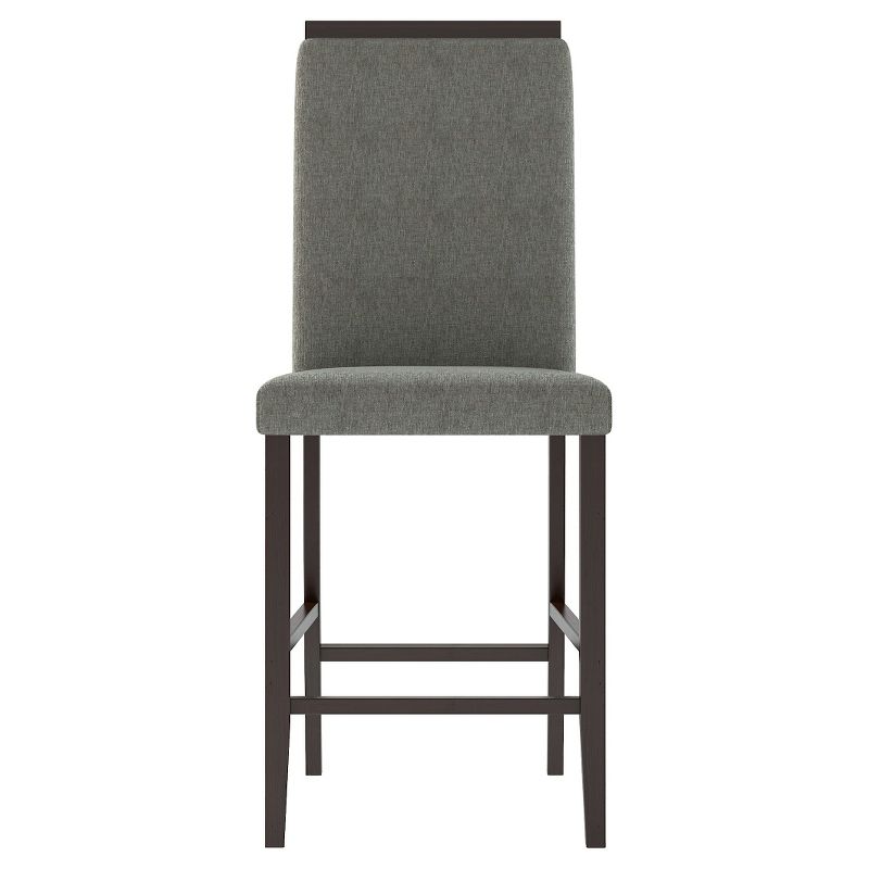 Add comfort to your dining room with this transitionally styled set of counter height dining chairs from CorLiving. This set includes two Rich Cappuccino stained wood dining chairs with Pewter gray fabric seats and wood accented backrest. Constructed from hardwood and hardwood composite, these chairs assemble with ease. These parsons inspired counter height chairs are of great value with exceptional style!