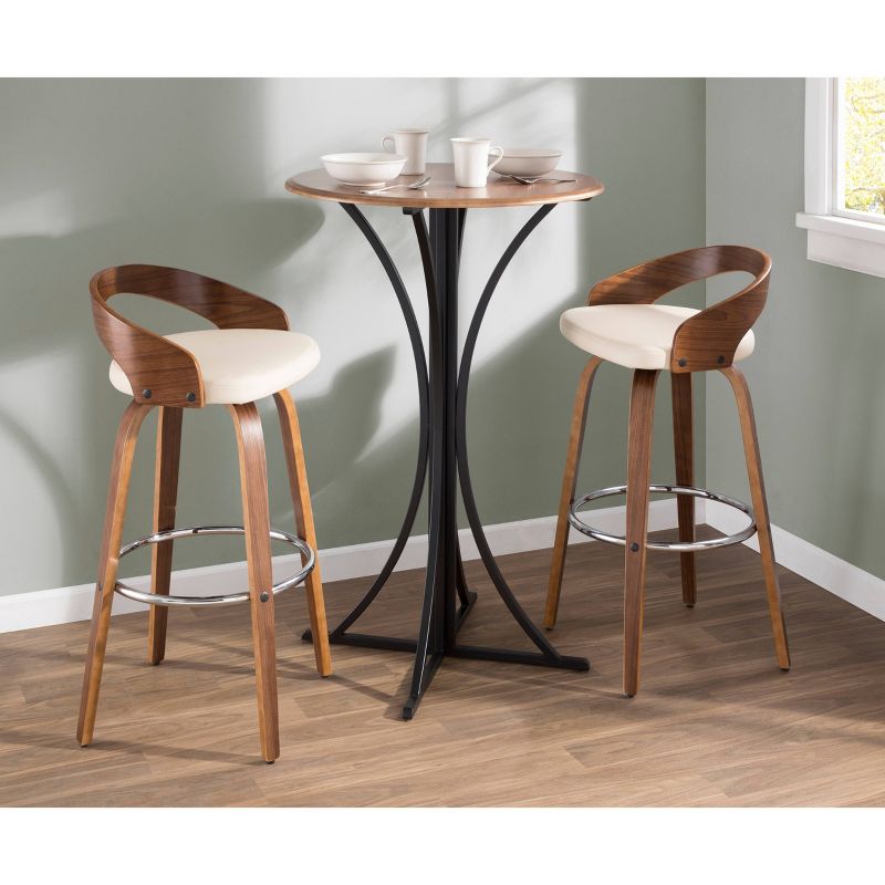 The Grotto Barstool by LumiSource curved low back and rounded legs radiate sophistication while modern features like a cushioned seat that swivels and a chrome footrest bring this piece into a contemporary class all its own. The comfy seat is perfect for long conversations, or a quick morning breakfast. Available in different finish combinations. Sold as a set of 2.