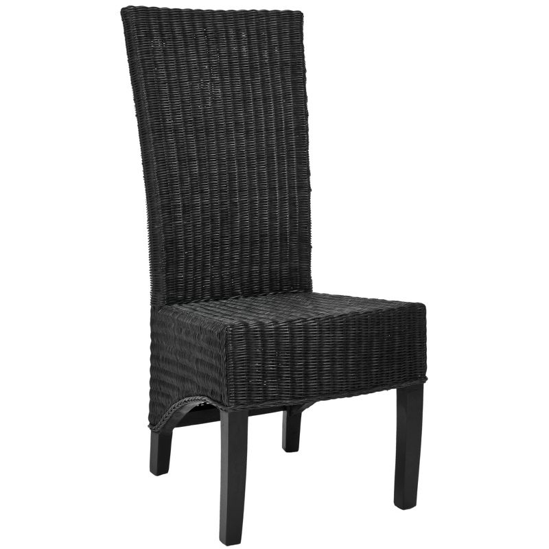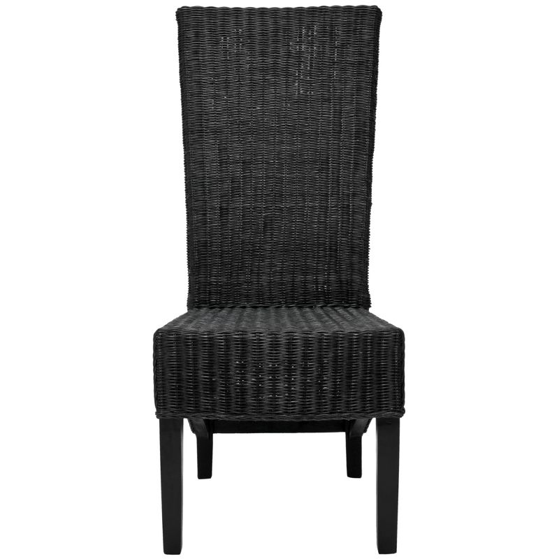 Crafted of black wicker with a mahogany frame in a chic black finish, the Safavieh Siesta Dining Chair-Black is brimming with casual, transitional style. Paring tactile woven wicker with a tall back and sloped bottom, Siesta brings true sophistication to the dining room, and brings warmth and hospitality to any gathering. Sold in sets of two.